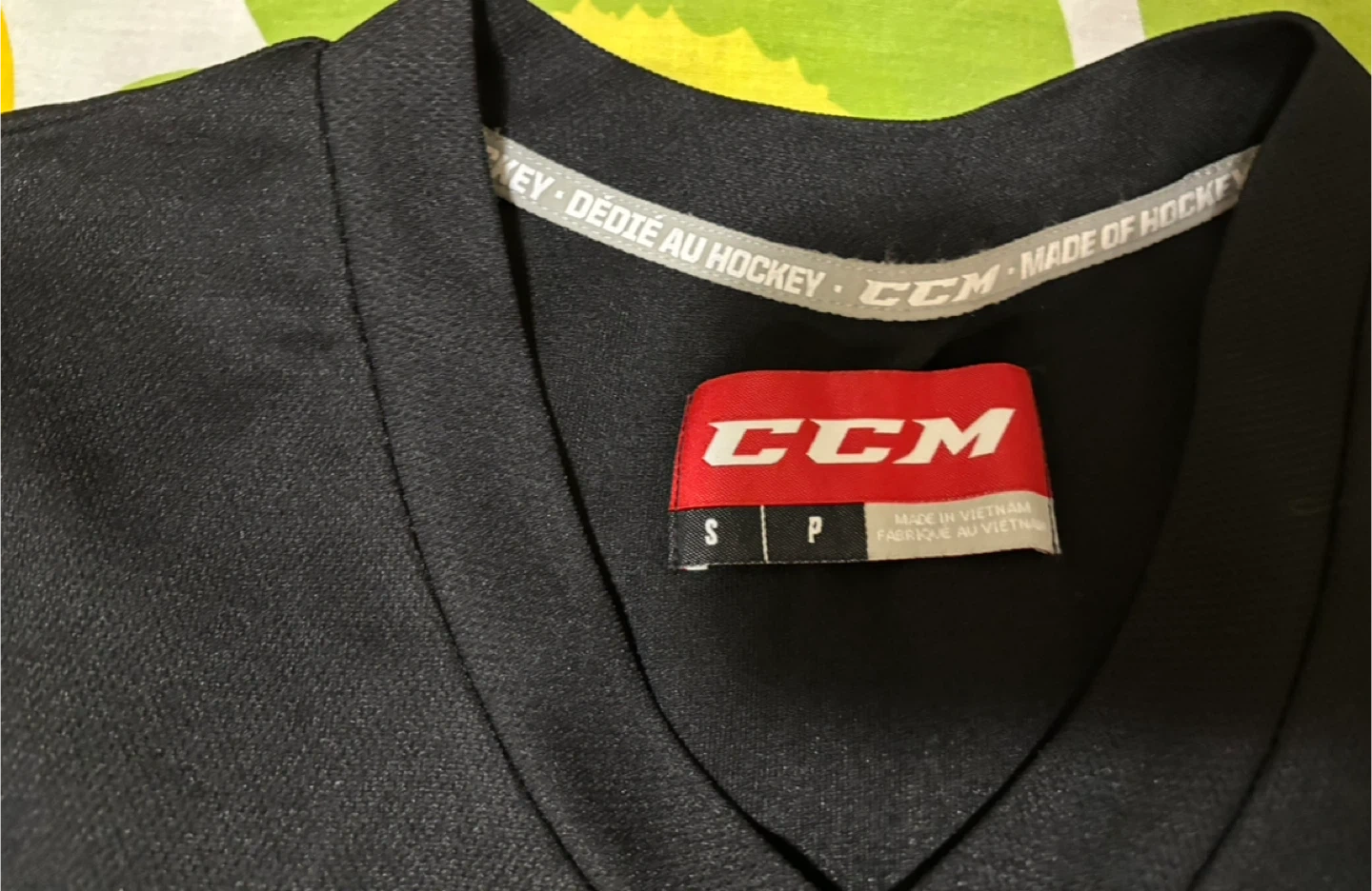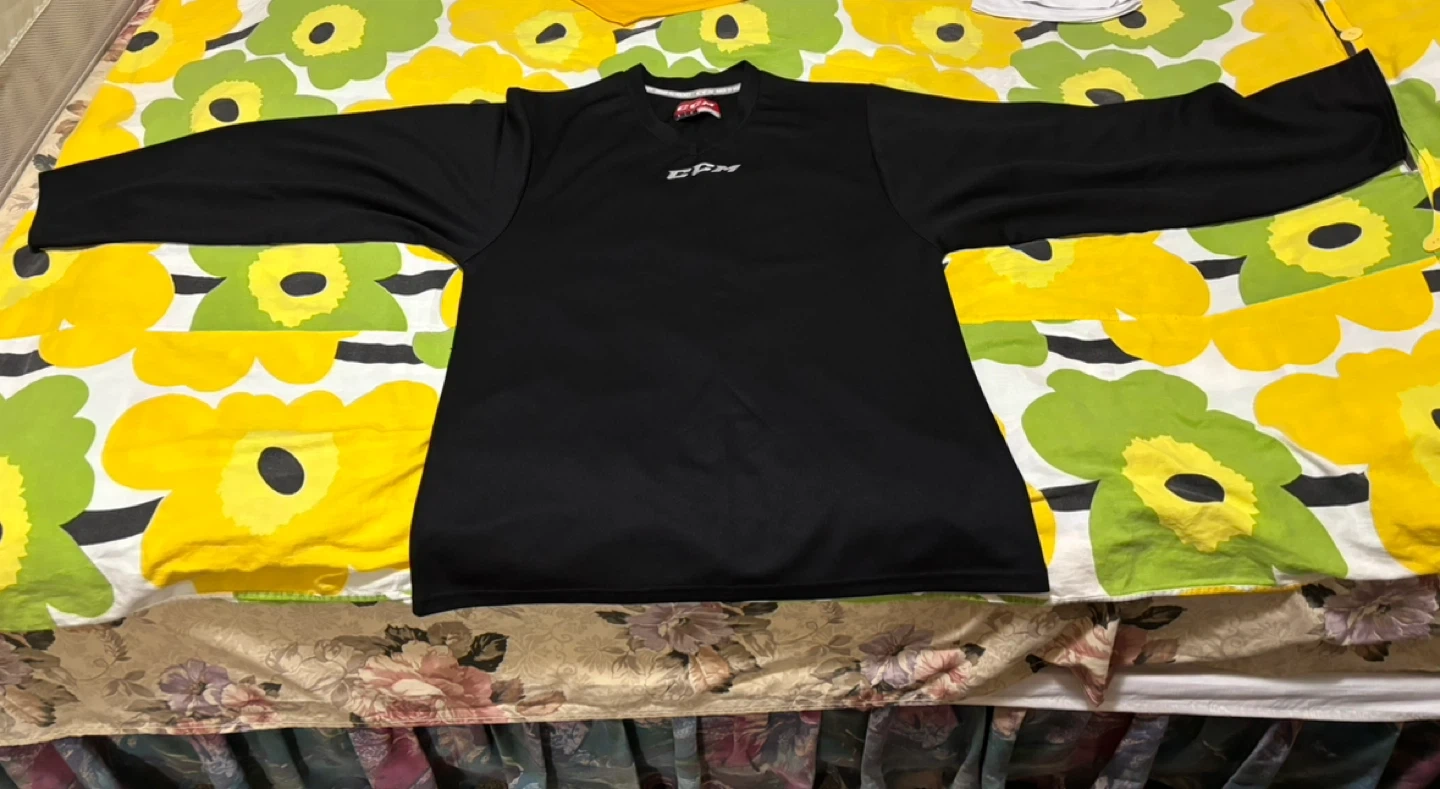 The other is a black CCM jersey, also size S/P.
