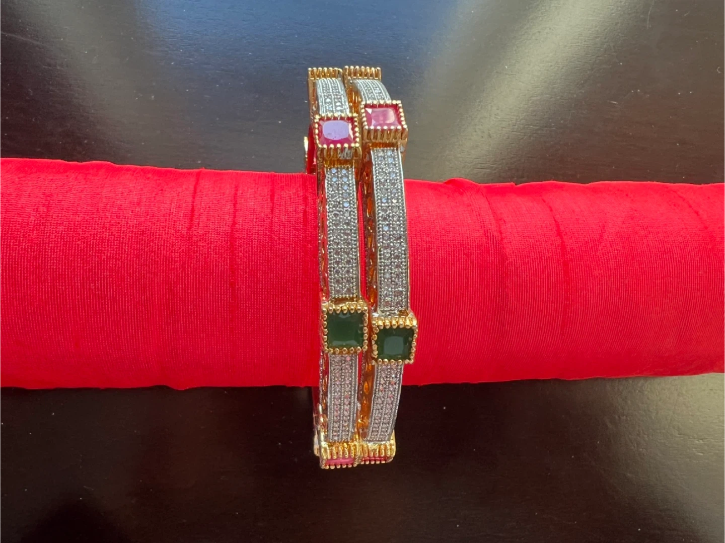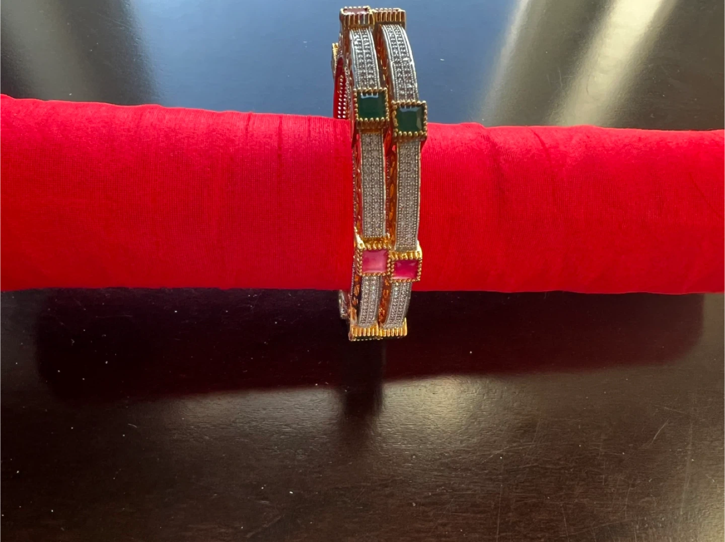 Selling a beautiful bangle set featuring colourful gemstones. This would be a great addition to any jewelry collection!