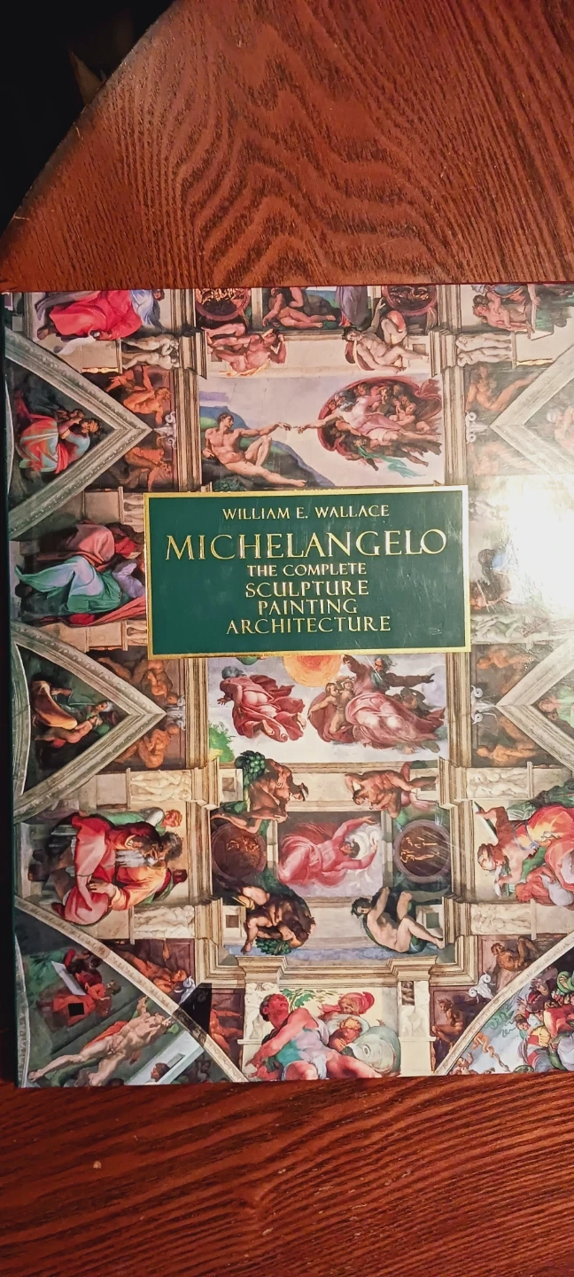 Selling "Michelangelo: The Complete Sculpture Painting Architecture" by William E. Wallace Large Hardcover Art Book. This book explores Michelangelo's work in sculpture, painting, and architecture. It's a great resource for art lovers and students alike !! The dimensions 14"×11" Excellent condition. ALL MY PRICES ARE NEGOTIABLE !!