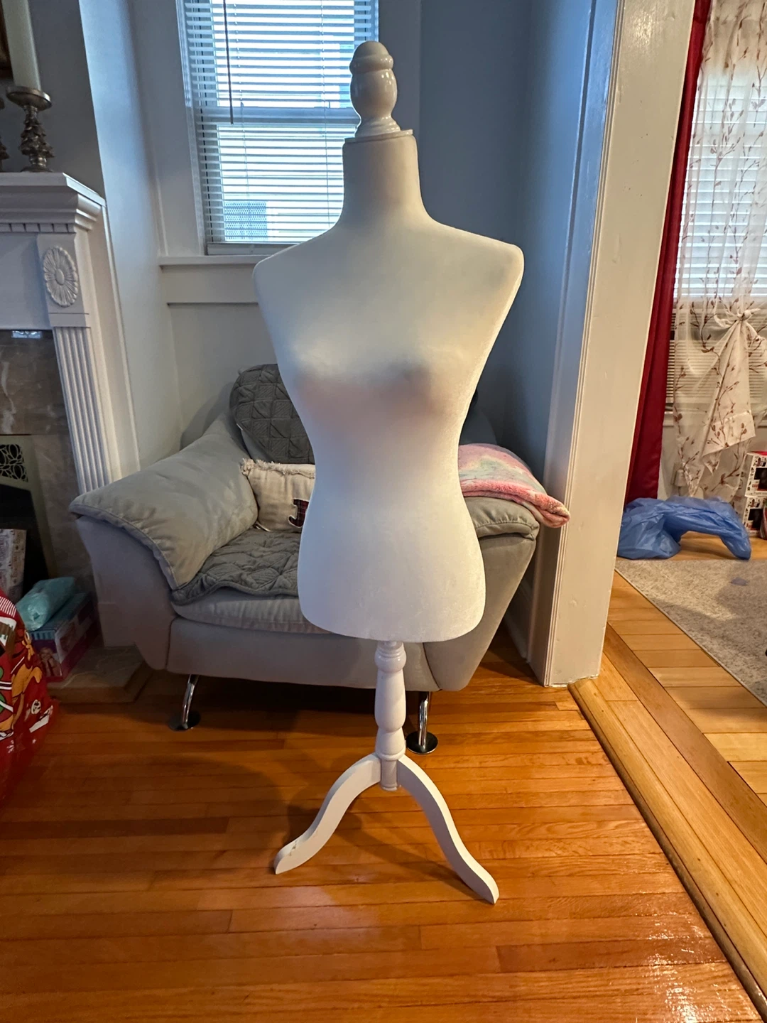 Selling a white mannequin torso with a stand! It's in great condition and perfect for displaying clothing or for sewing projects. The stand is sturdy and the torso is lightweight and easy to move around