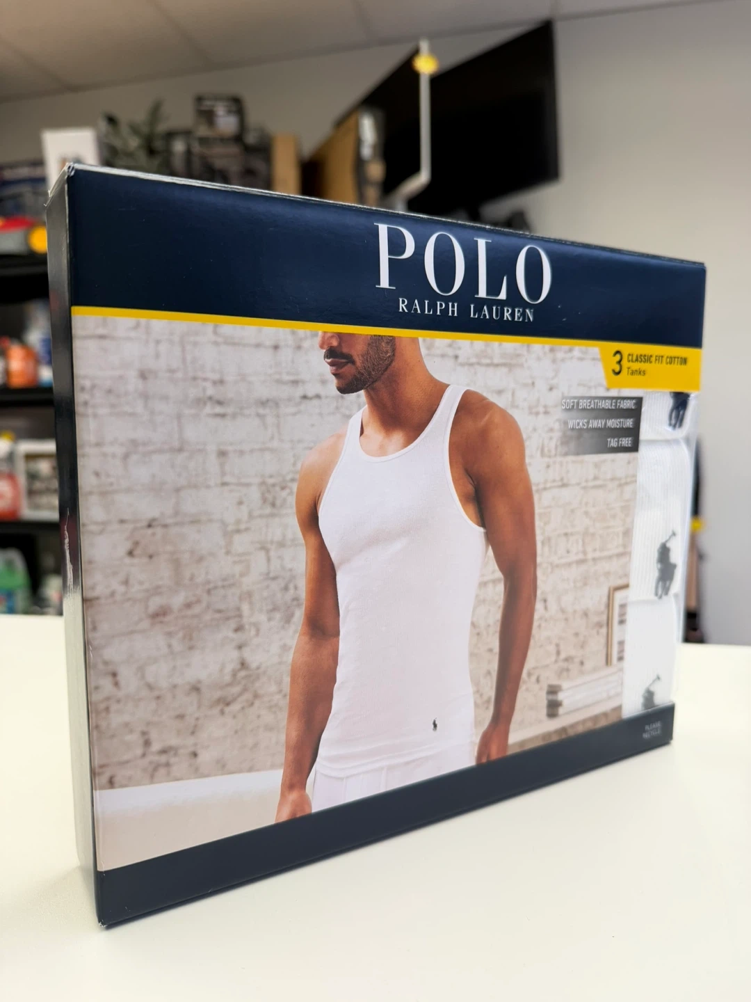I'm selling a brand new 3-pack of Polo Ralph Lauren classic fit cotton tanks! They are size small and white. The box says they are soft and breathable and wick away moisture. Originally bought for $49.50 USD