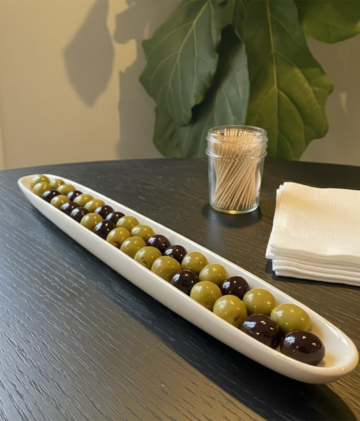 Selling a narrow ceramic dish, perfect for olives or other appetizers! It's in new condition and would look lovely on any table.
