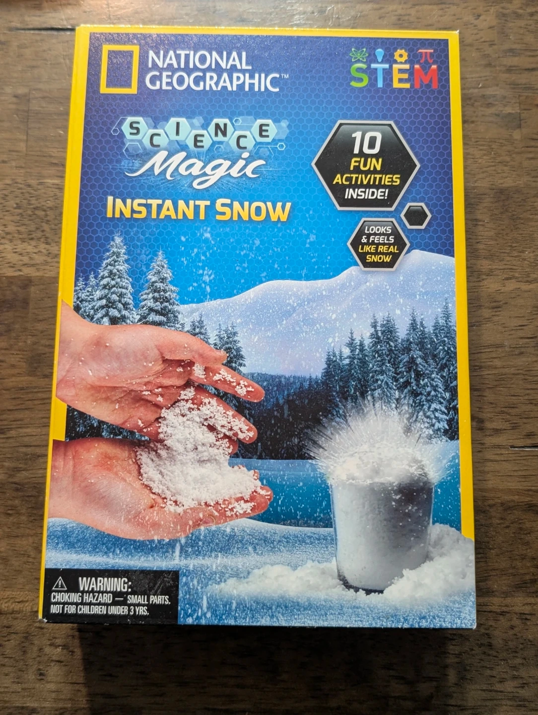 Get ready for some fun with this National Geographic Science Magic Instant Snow kit! It includes 10 fun activities and looks and feels like real snow. Perfect for science experiments and magical fun!