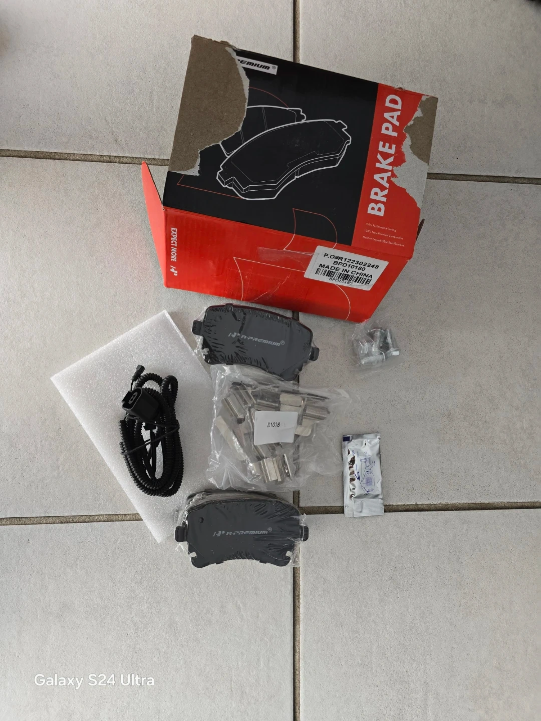Selling a brand new set of Hi-Premium brake pads! The box is a little damaged, but the pads themselves are in perfect condition and have never been used. Includes all the components you see in the photos, ready to install