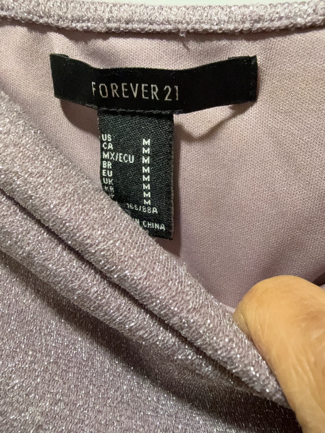 Selling a Forever 21 tube top in size M! It's a shimmery, light purple color. The material is stretchy and comfortable. Perfect for layering or wearing on its own!