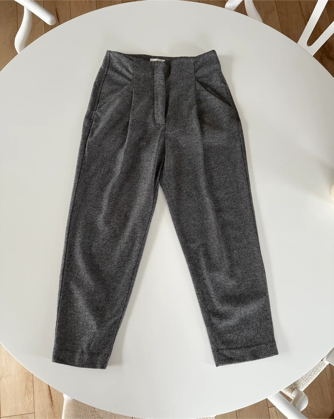 Mid-rise, ankle-length pants with a clean waistband. Made with a luxe virgin wool-blend flannel from Italy. Zippered fly with button & hook-and-eye closure. Front pleats & slash pockets. One back button closure pocket.