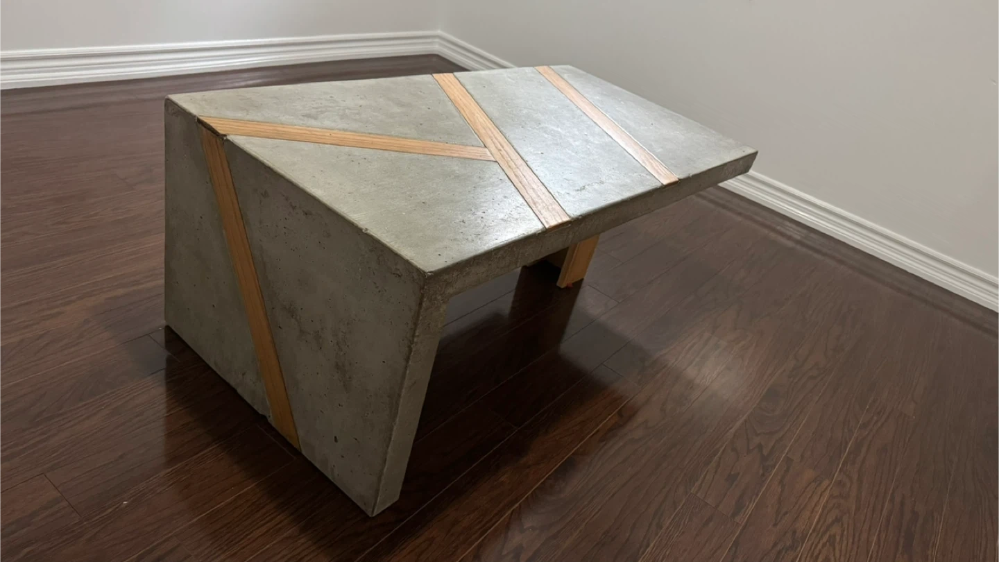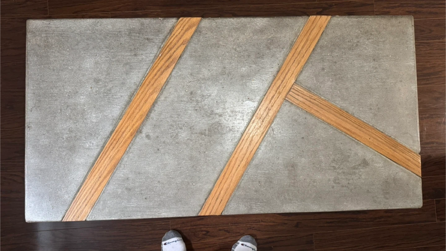 Selling a unique coffee table made of concrete with wood accents. It's in great condition and would be a stylish addition to any living room! Custom built with oak inlay, really heavy as it’s real concrete.