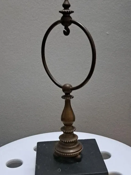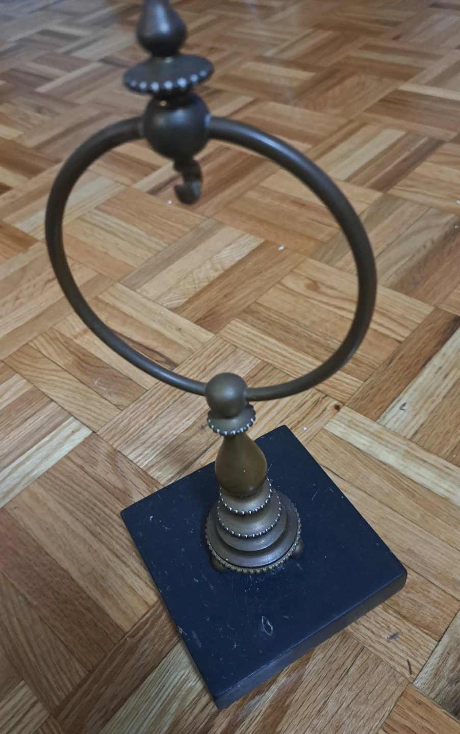Selling a vintage Brass Pocket Watch \Candle holder. It has a black square marble base and a brass ring. It's in good condition and would be a good addition to Pocket watch or Vintage decorative collectors.