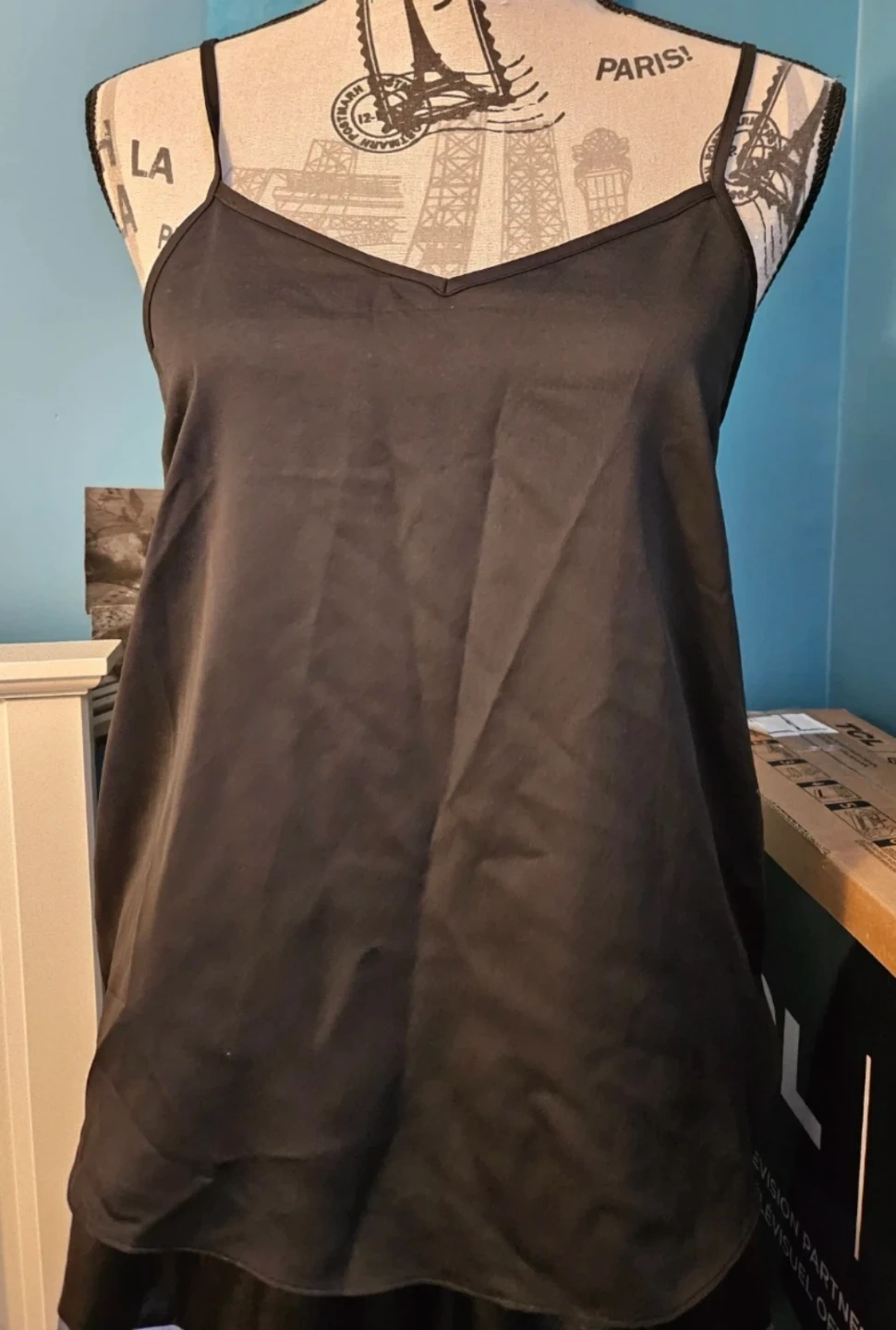 Selling a cute black cami top! It's brand new and would be a lovely addition to your wardrobe. Perfect for layering or wearing on its own during warmer weather