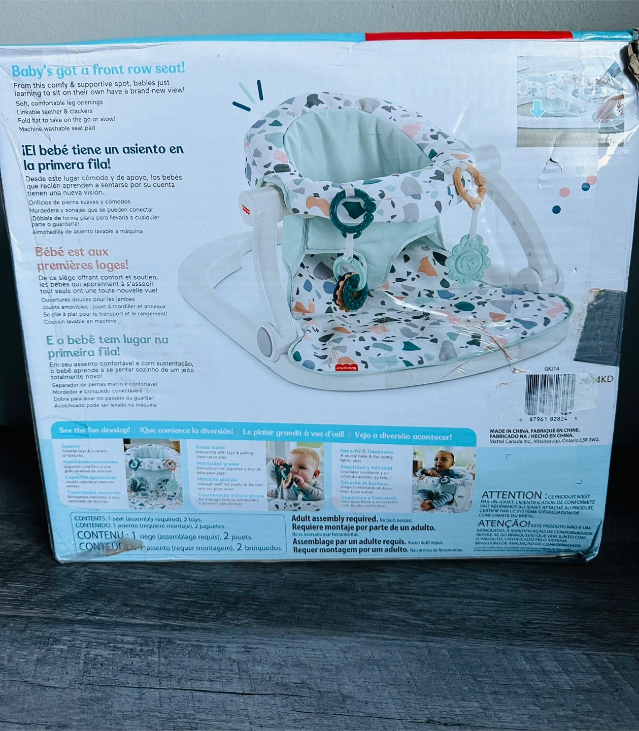 I'm selling a Fisher-Price Sit-Me-Up Floor Seat! It's comfy and supportive for your little one. Includes two linkable toys to keep baby entertained. Comes with the original box and all components