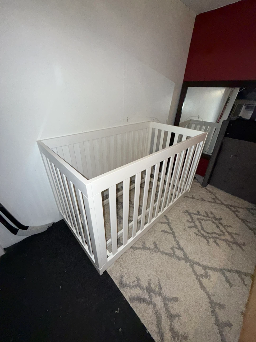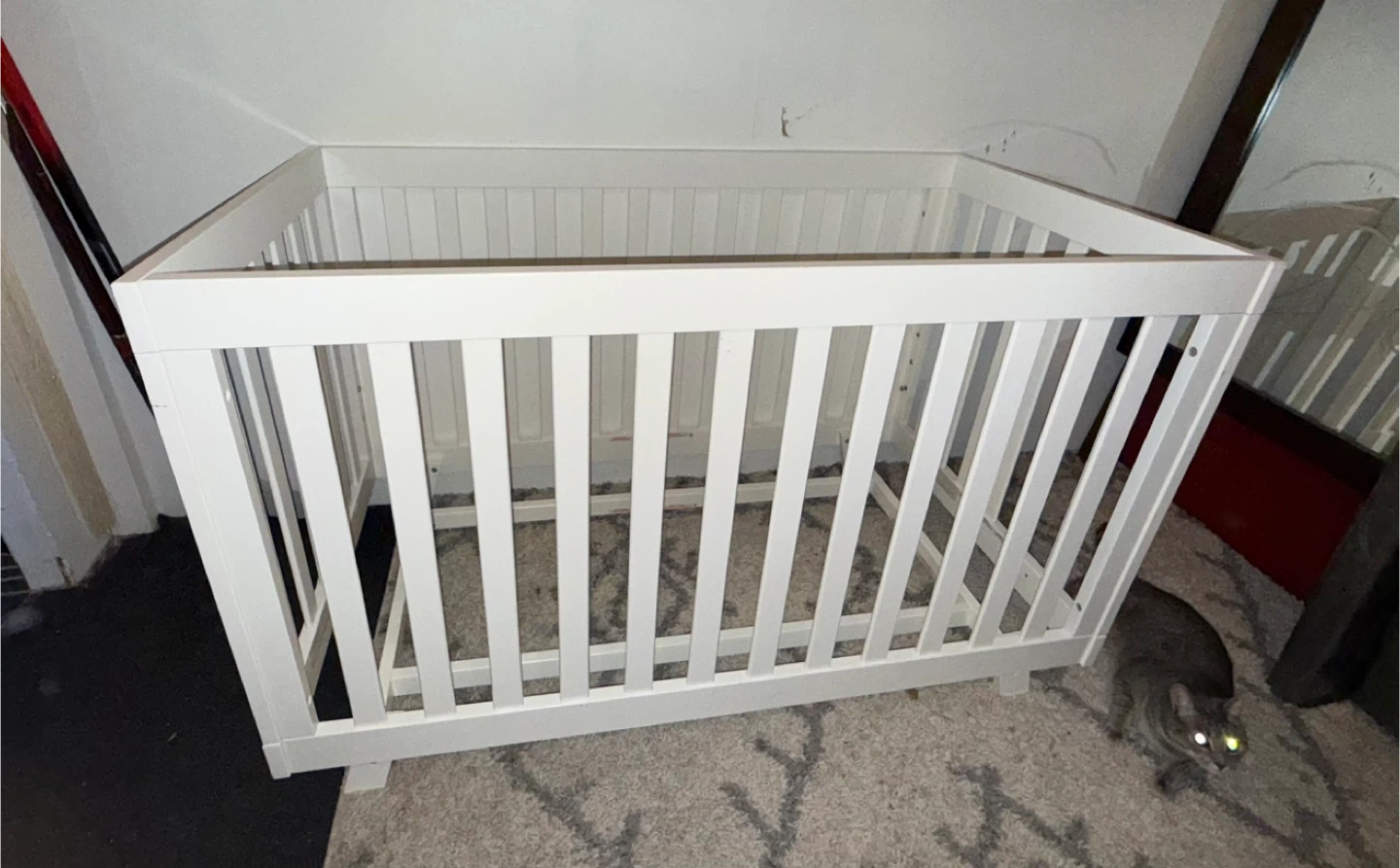 Selling a Stork Craft Beckett Convertible Crib in white. This crib is designed to grow with your child, converting into a toddler bed, daybed, and even a full-size bed. It's made of solid wood and wood products, ensuring durability and safety for your little one. In great condition, can take it apart upon request. Also can add in a mattress for extra. Pickup or delivery for a fee.
