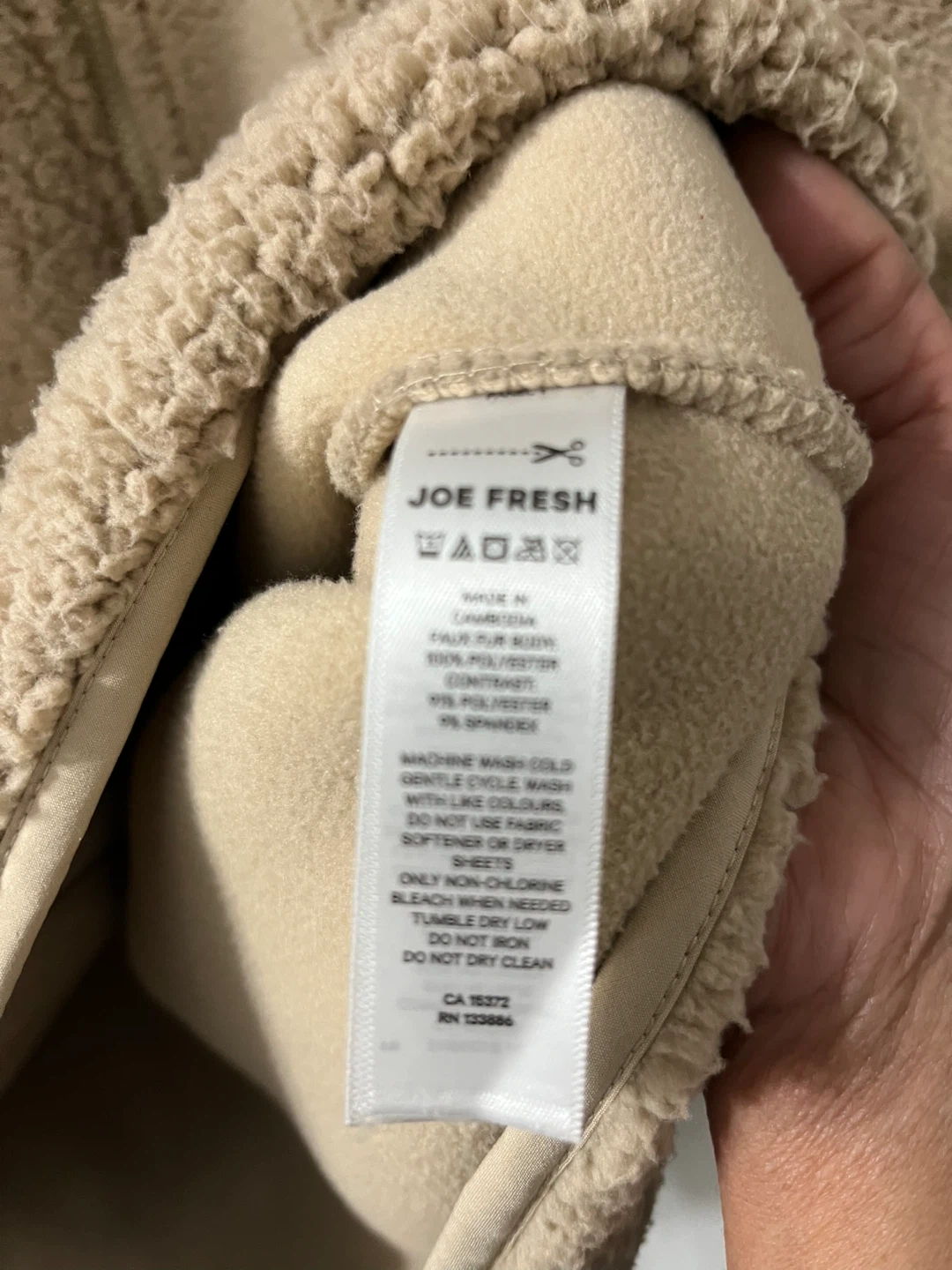2 Cozy Joe Fresh Active sherpa coats in a black and lovely beige colour! Both are size L/G and made with 100% polyester for the body and 95% polyester, 5% spandex for the lining. Perfect for staying warm and stylish on chilly days. Selling one for $25 or both for $45 Both in great condition, hardly worn!