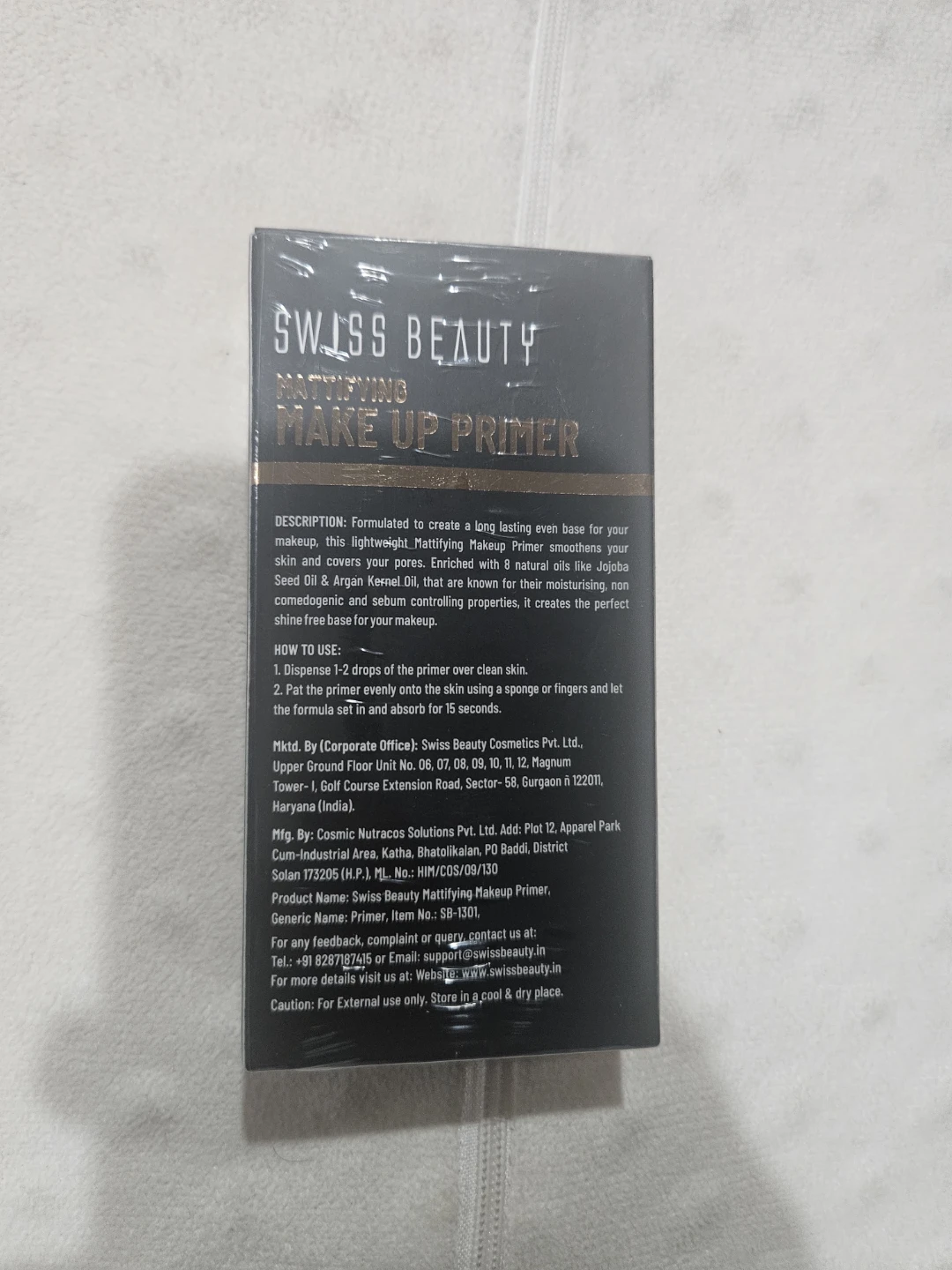 Selling a brand new Swiss Beauty Mattifying Make Up Primer! It blurs pores and smoothens the base with Vitamin A & Jojoba. The net quantity is 30g.