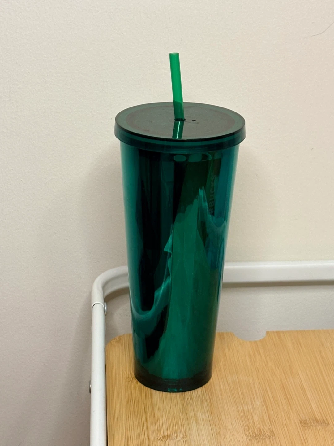 Starbucks green tumbler for cold drinks with lid and a straw. BPA free. Can hold 24oz/710ml.