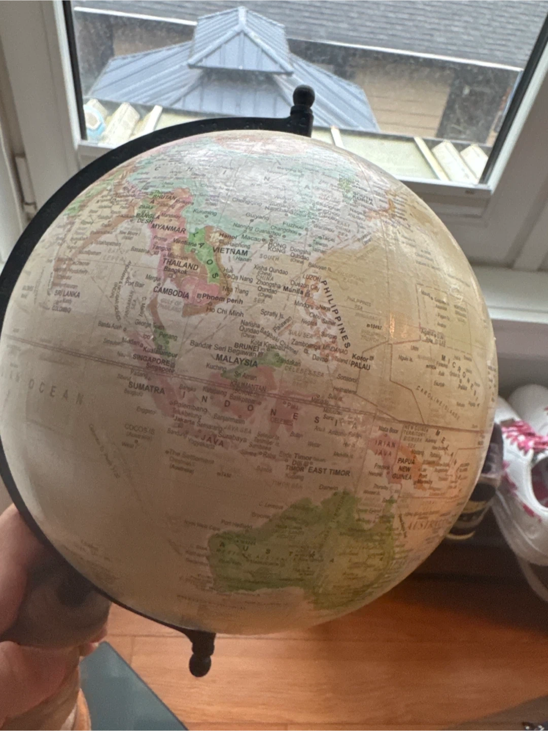 Selling a world globe! It's a lovely decorative piece that would look great in any home or office. The globe features detailed cartography and a classic design. It's in good condition and ready to be displayed!
