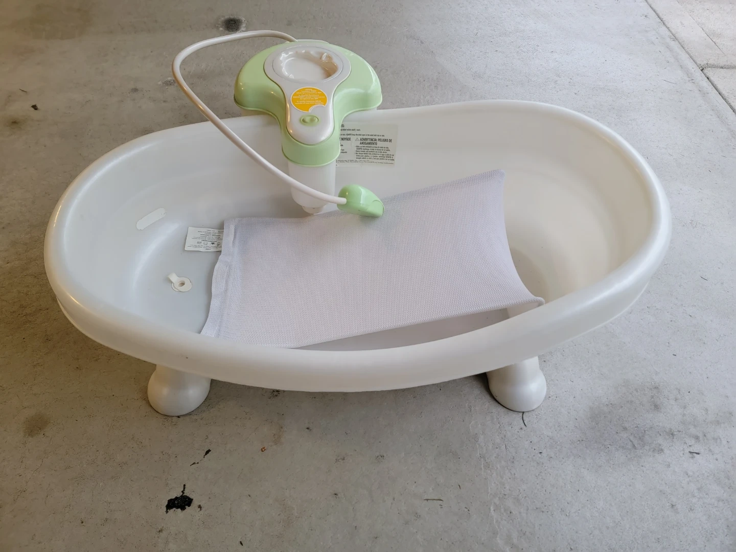 Selling a baby bathtub with a sling and water circulation system. It's in great condition and ready for a new little one! Perfect for making bath time easier and more enjoyable for both you and your baby