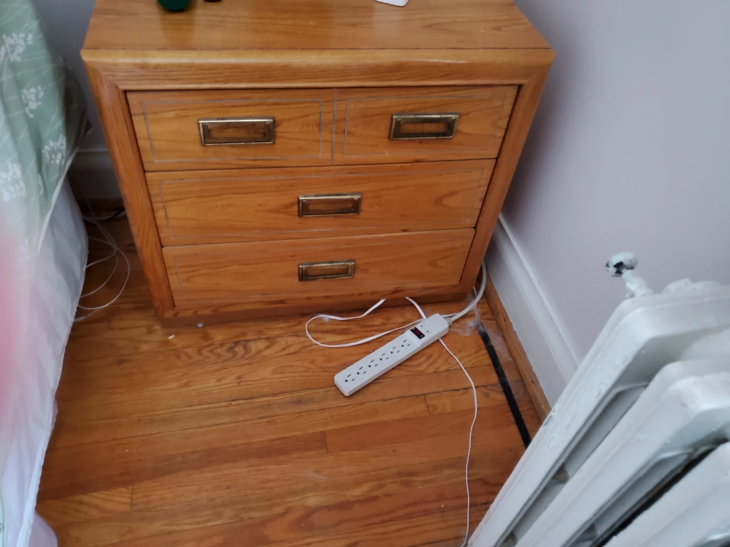 Selling a wood dresser set. It includes a nightstand, a dresser with a mirror, and a tall dresser. All pieces are in good condition and have a matching design.