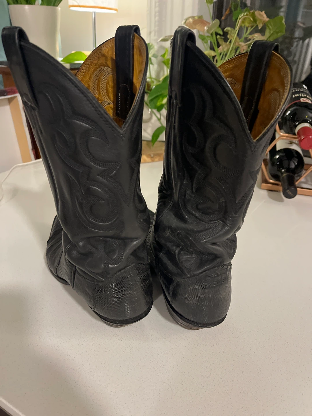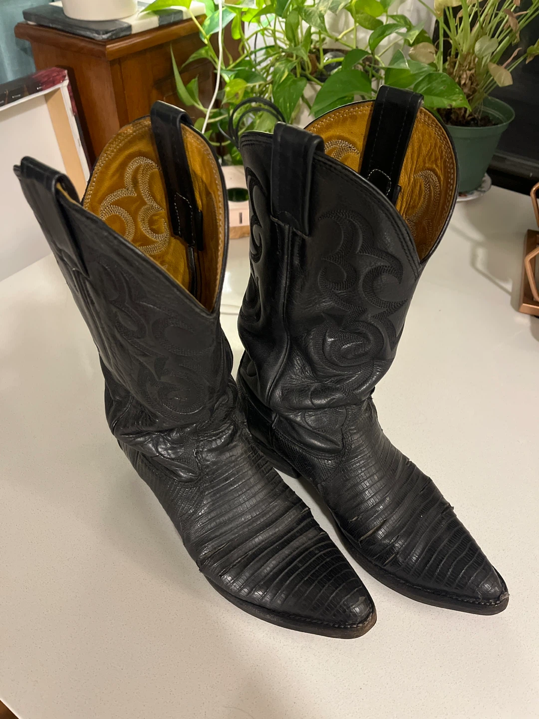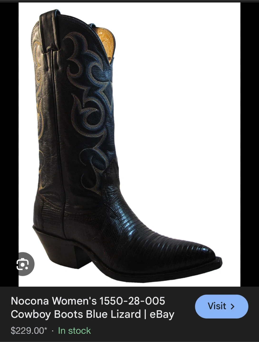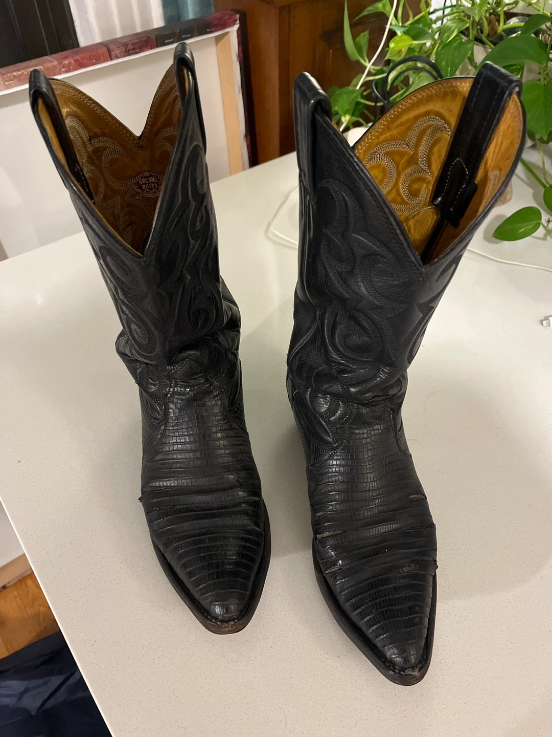 Selling a pair of Nocona cowboy boots in black lizard skin.