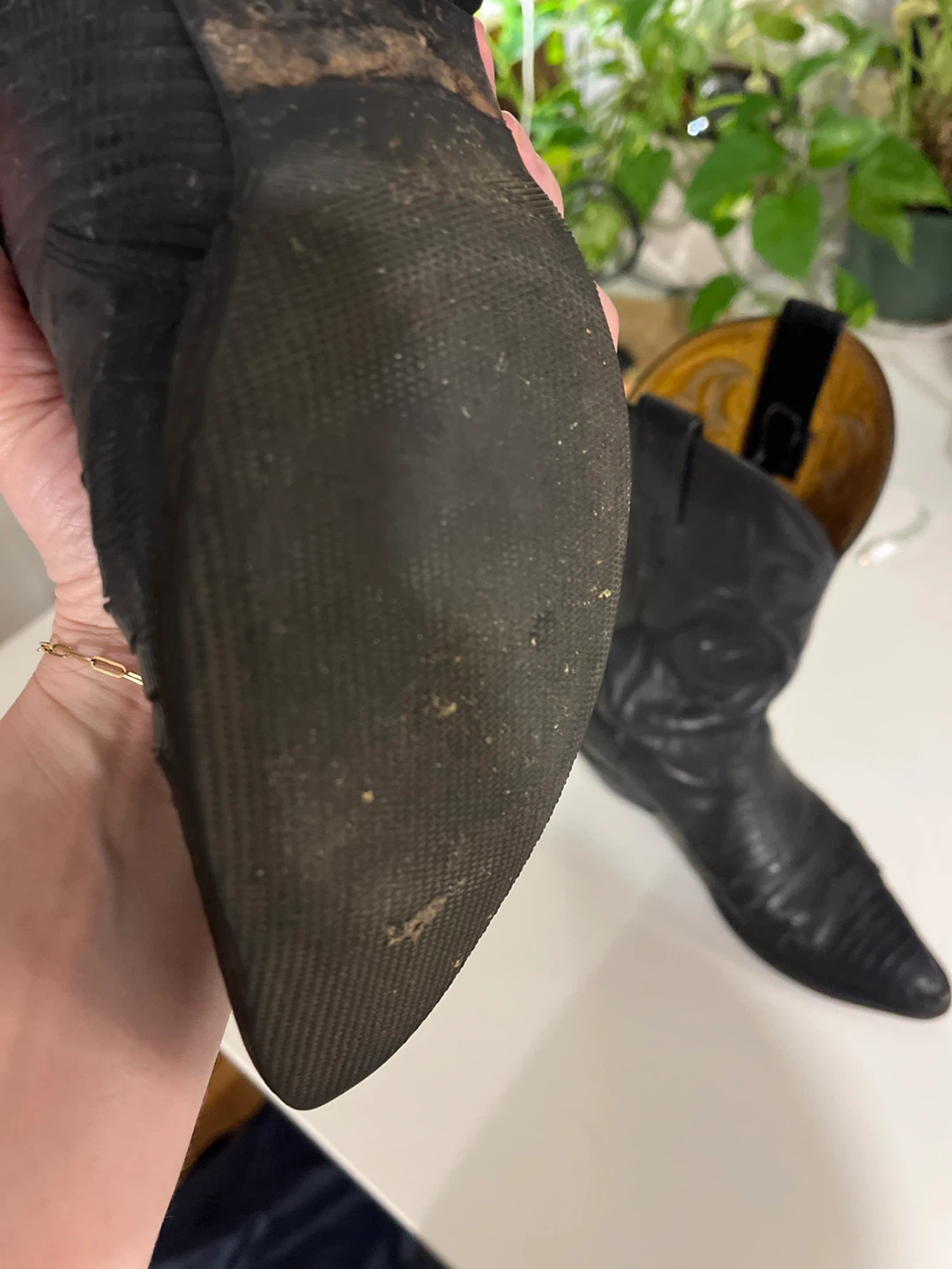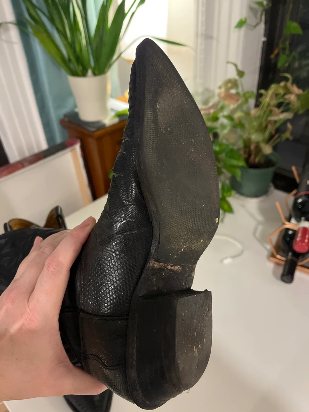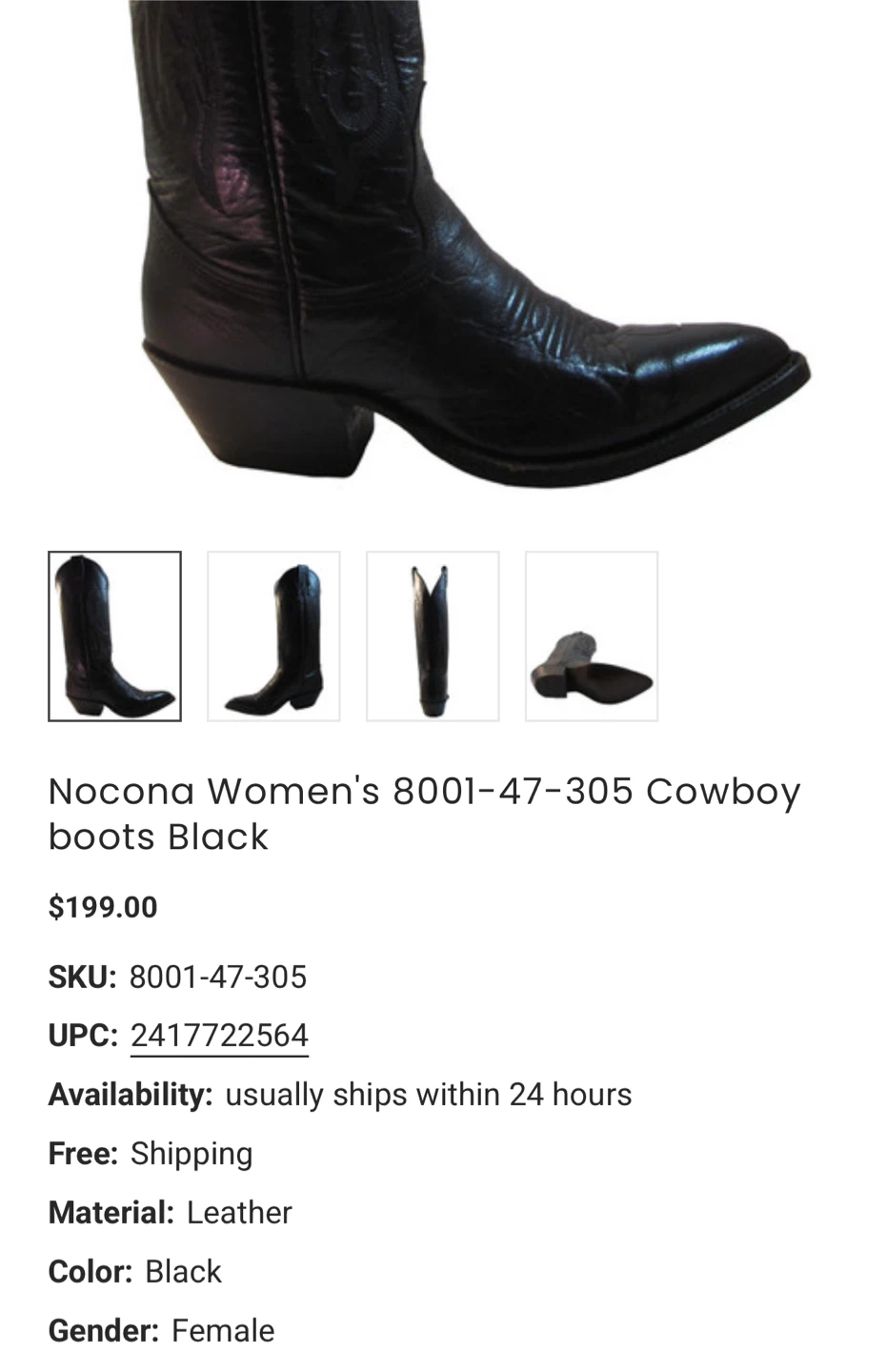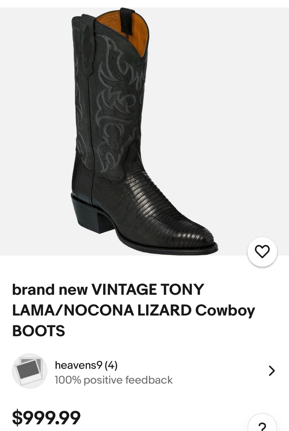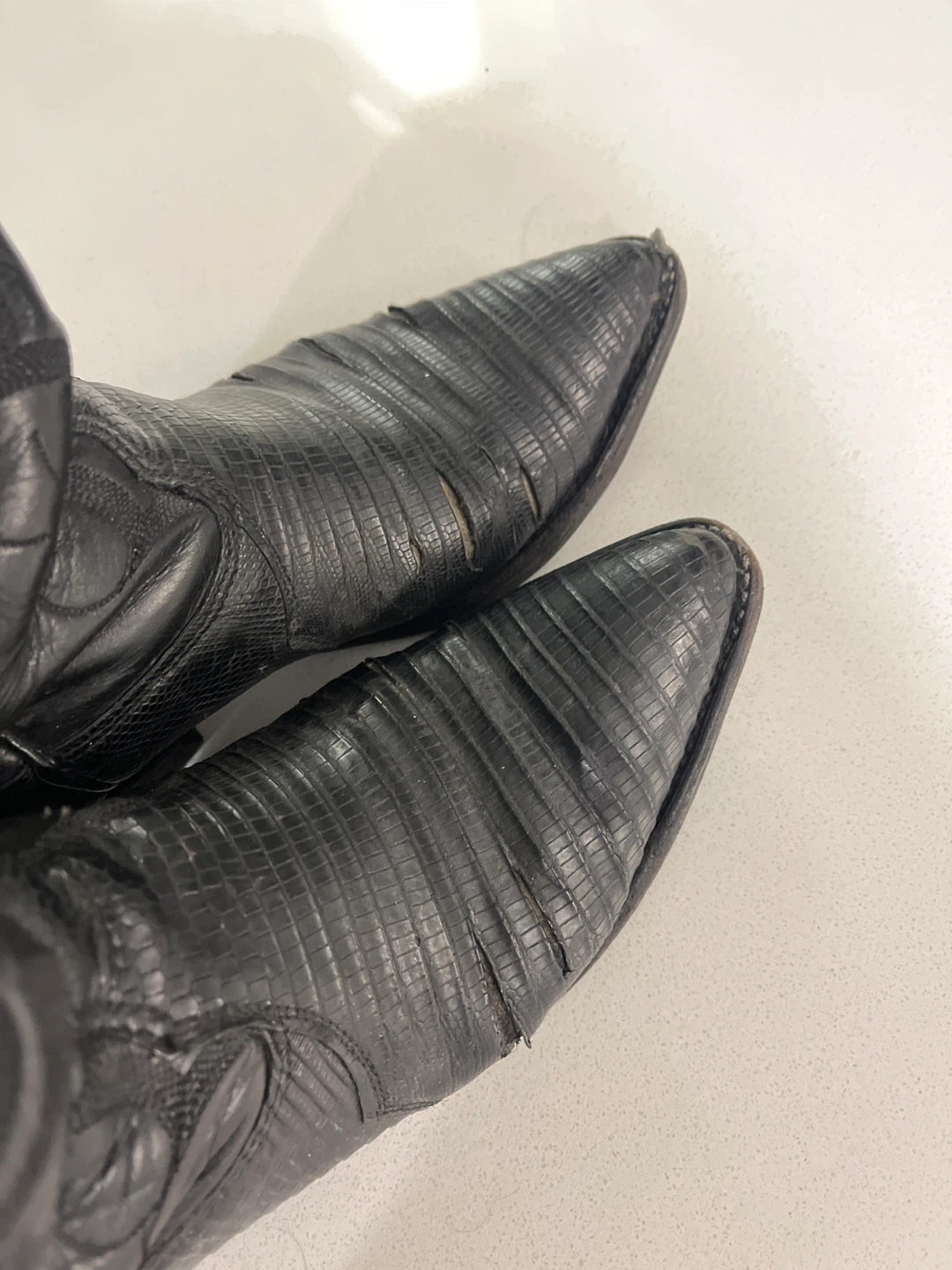Selling a pair of Nocona cowboy boots in black lizard skin.