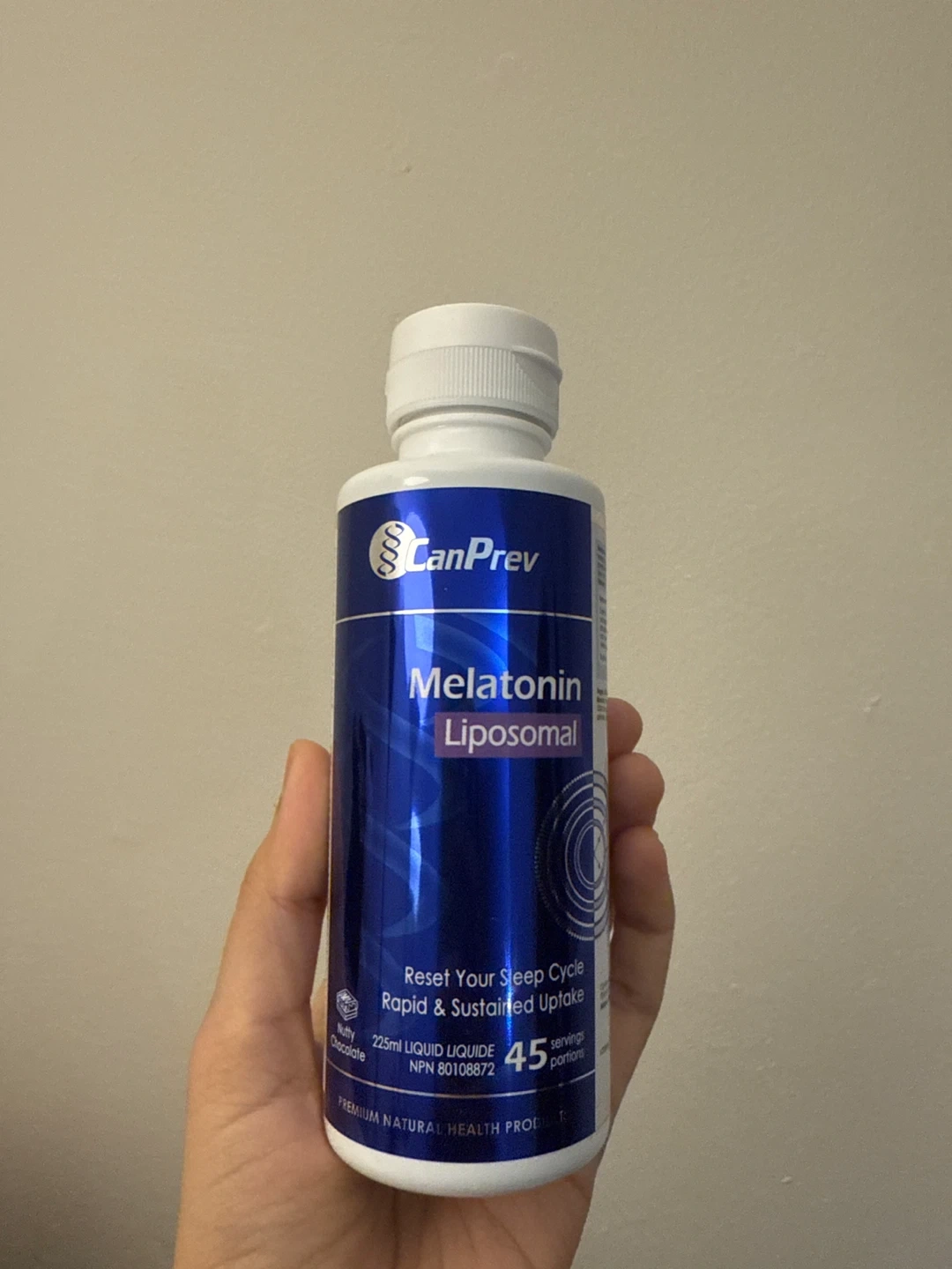 Selling a bottle of CanPrev Melatonin Liposomal. It's designed to reset your sleep cycle with rapid and sustained uptake. It contains 225ml of liquid and provides 45 servings. The expiration date is February 2026, so it's fresh and ready to use!