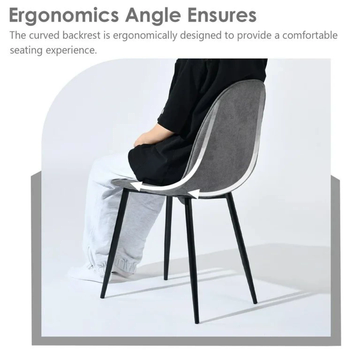 Upgrade your dining space with these stylish & comfortable grey dining chairs featuring sleek black legs and an ergonomic curved backrest.