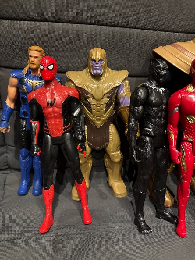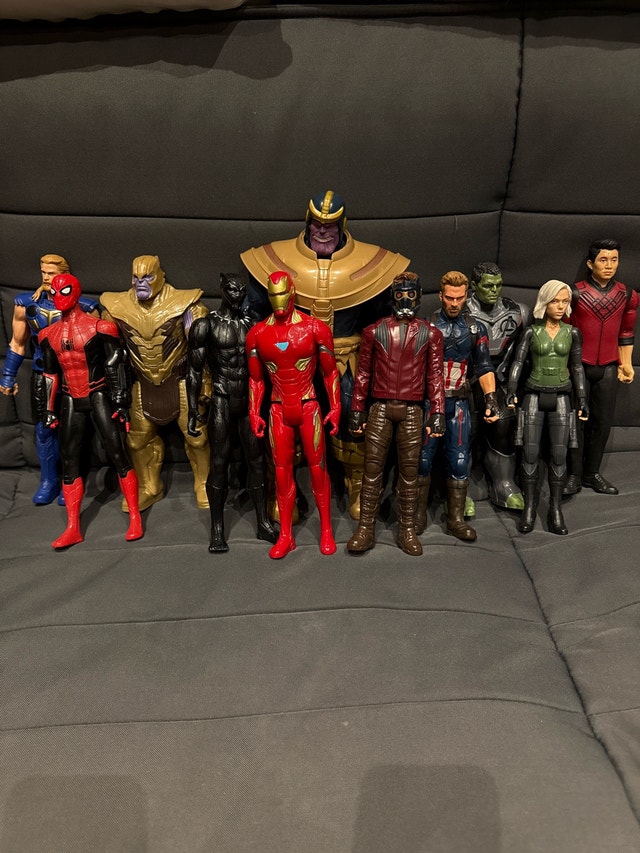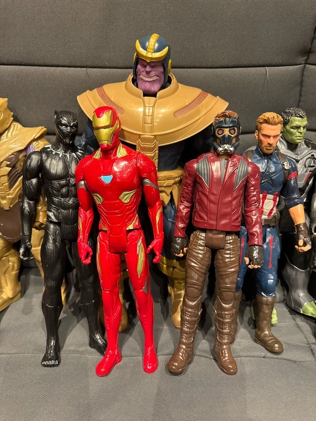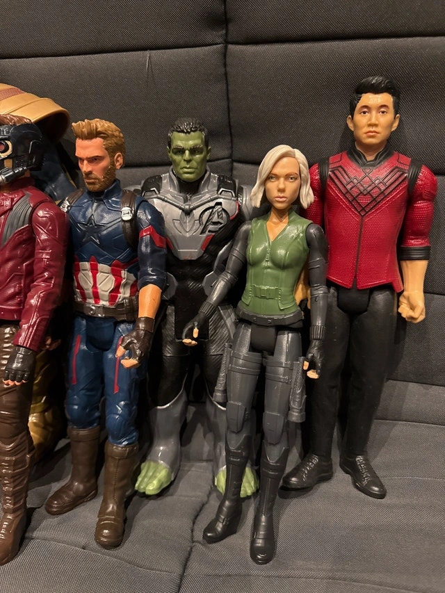 Assemble your own team of Earth's mightiest heroes with this collection of pre-owned Avengers action figures, each poised for action. These figures have been previously enjoyed, showing some signs of battle, but are still eager to embark on new adventures. Embrace the chance to own this dynamic set of heroes and villains! All for $5 !!