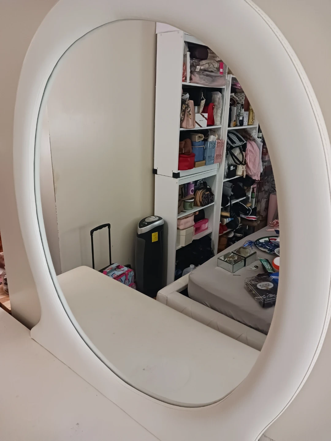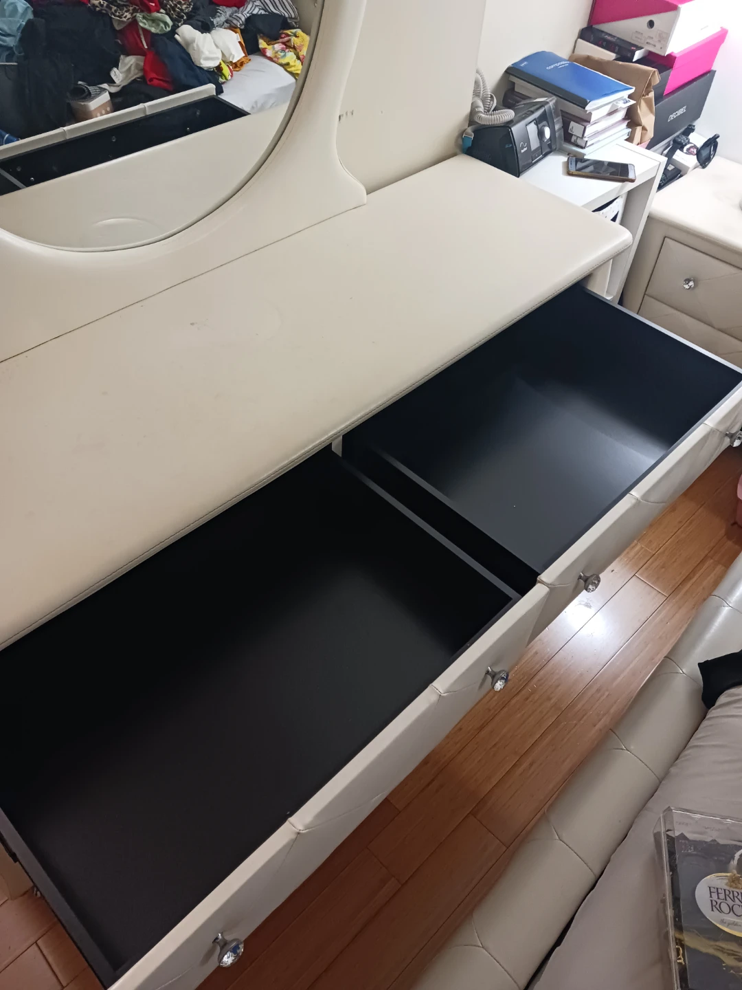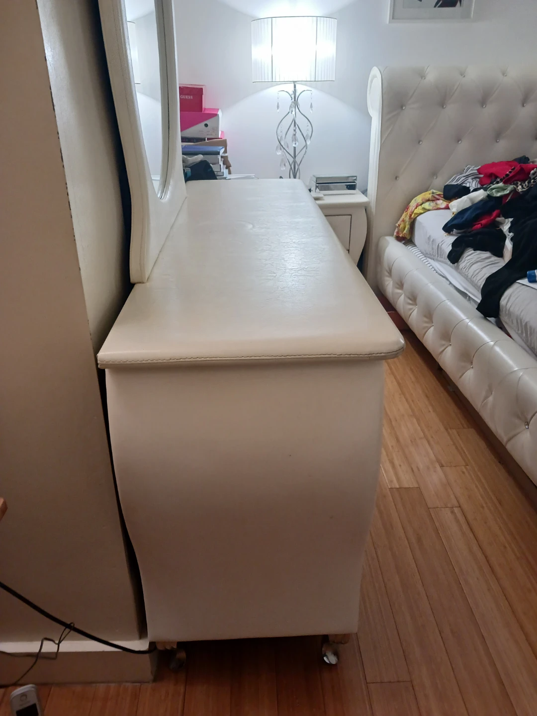 Cream Dresser with Mirror – 6 Drawers – Diamond Handles