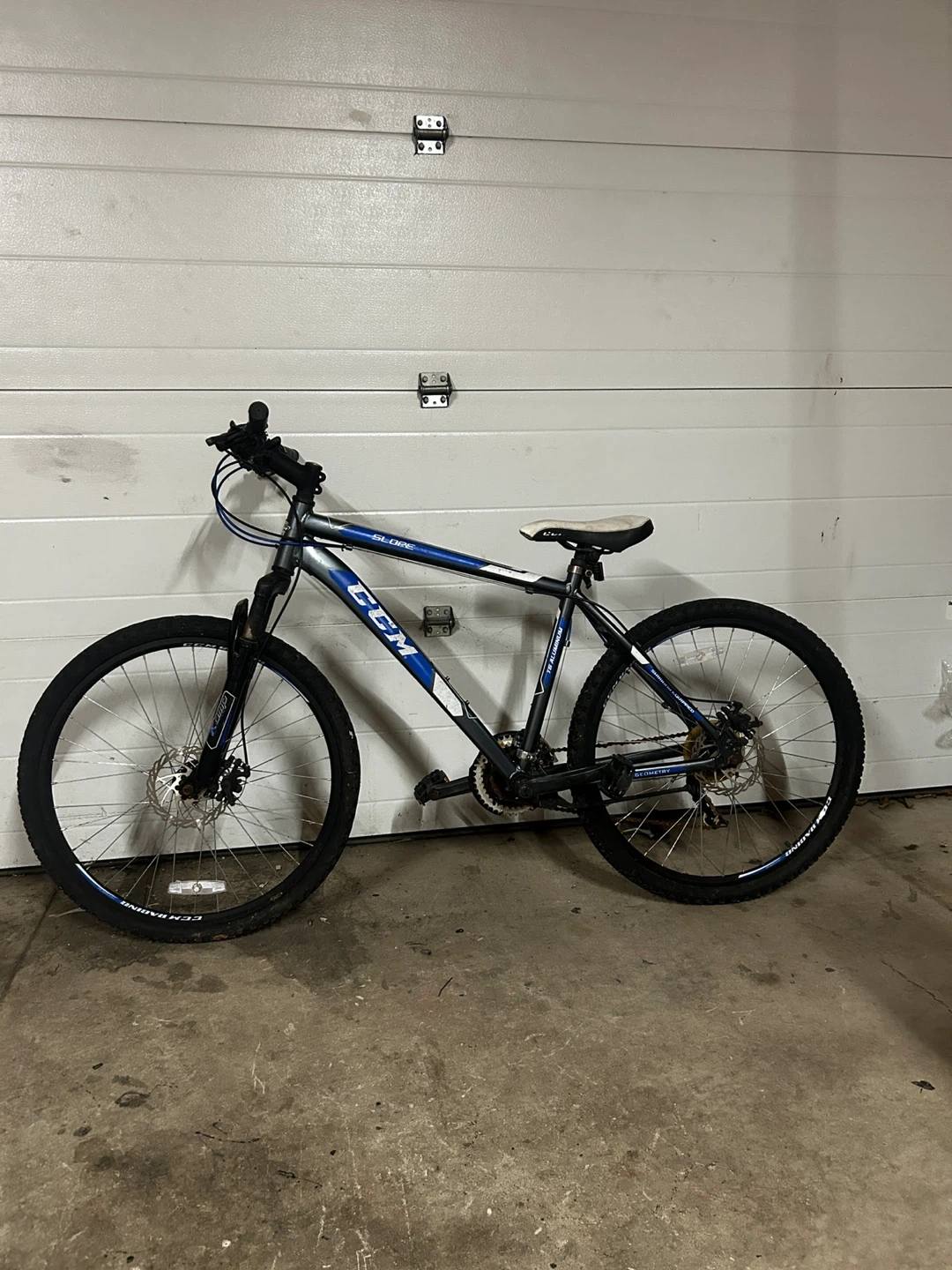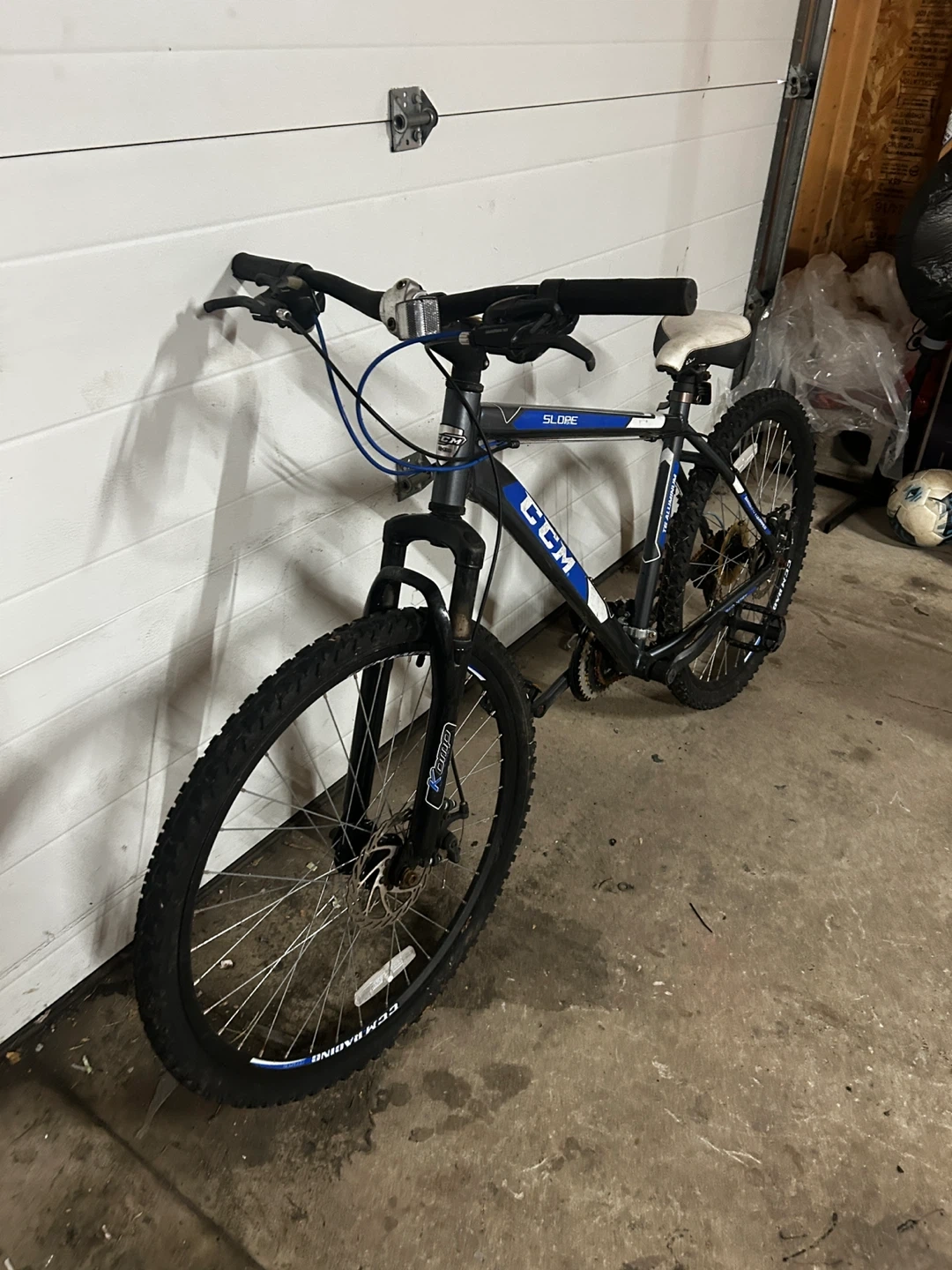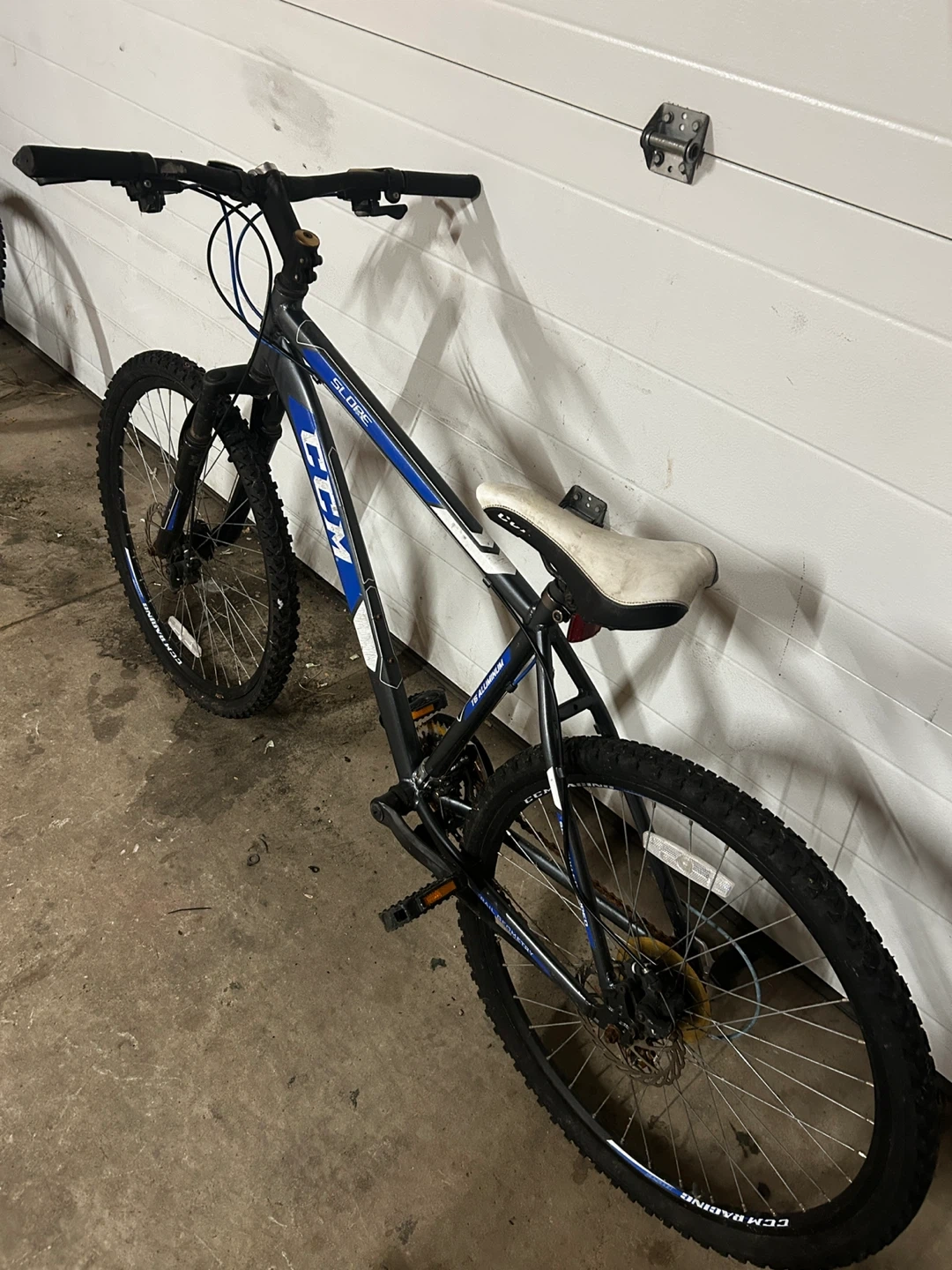 Selling a CCM Slope mountain bike in blue and white. It's in good condition and ready for some trails or city riding. A great bike for getting around!