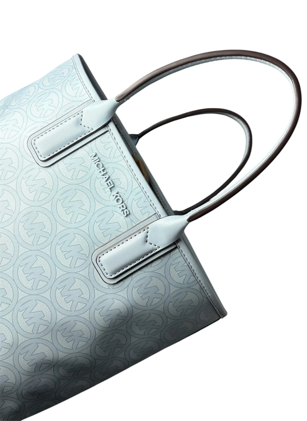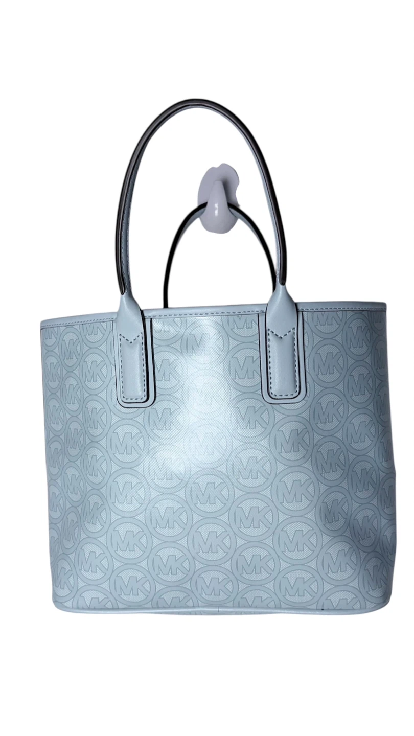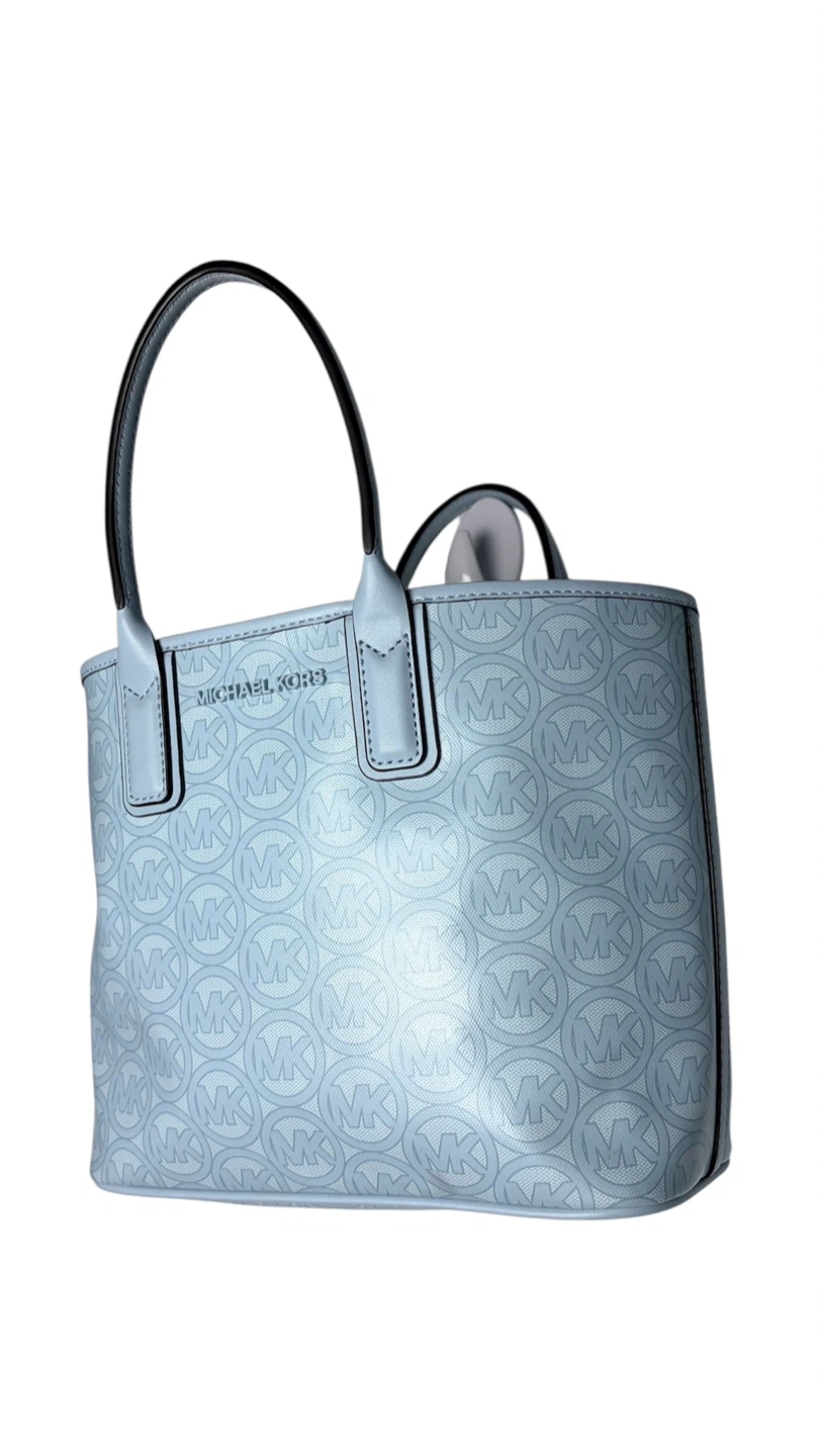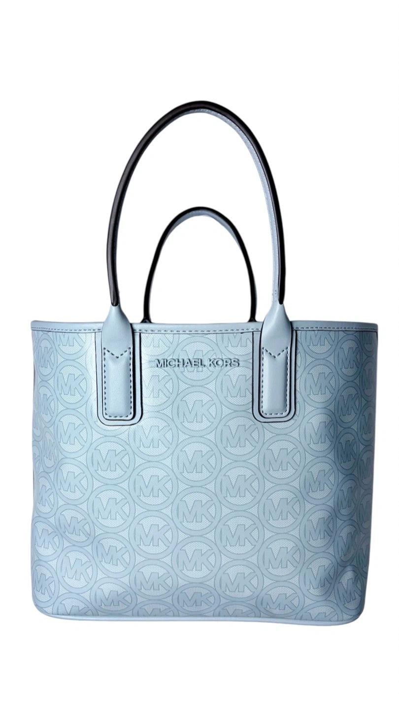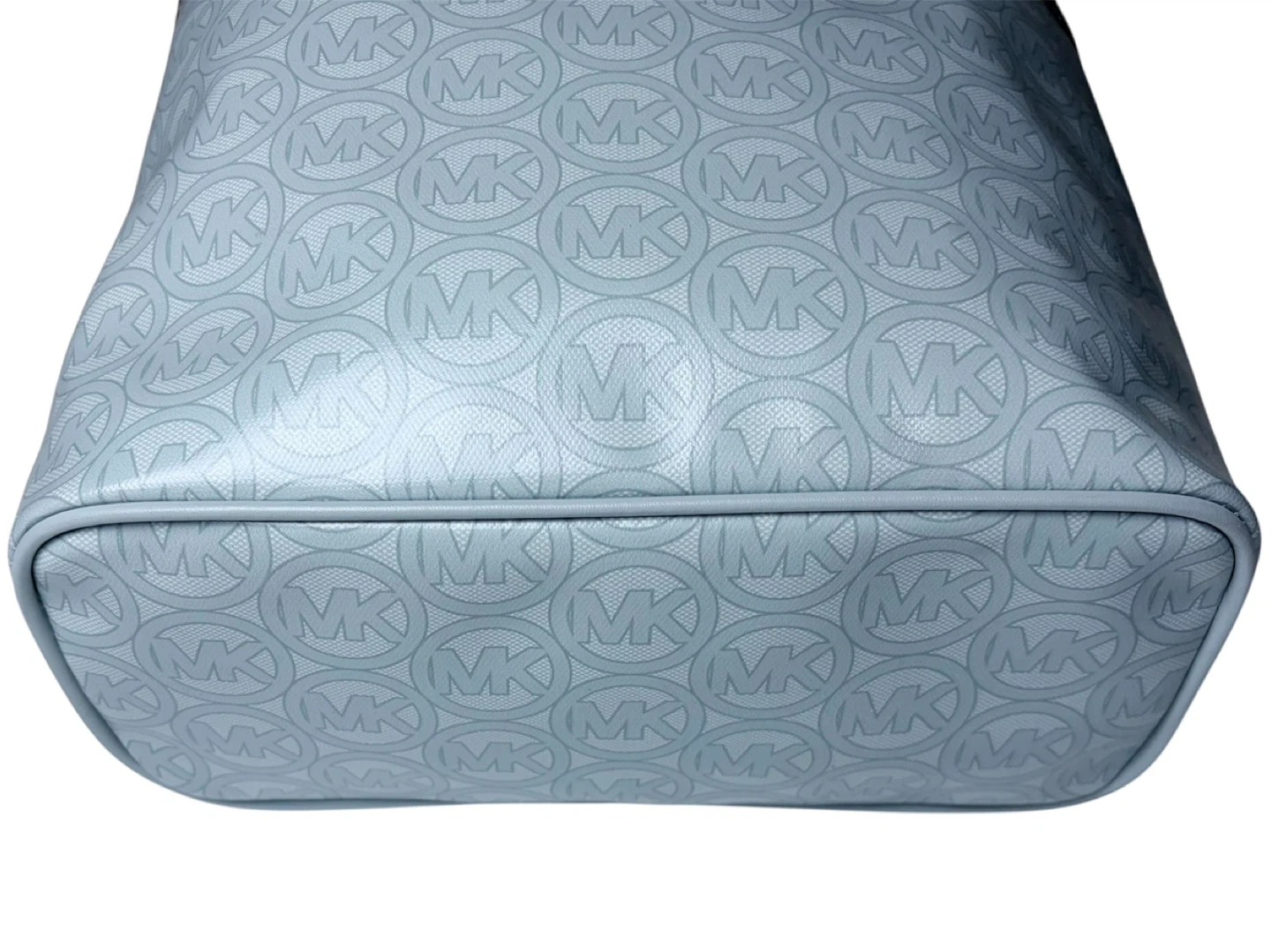 Chic light blue tote with signature MK pattern Stylish and versatile for daily use