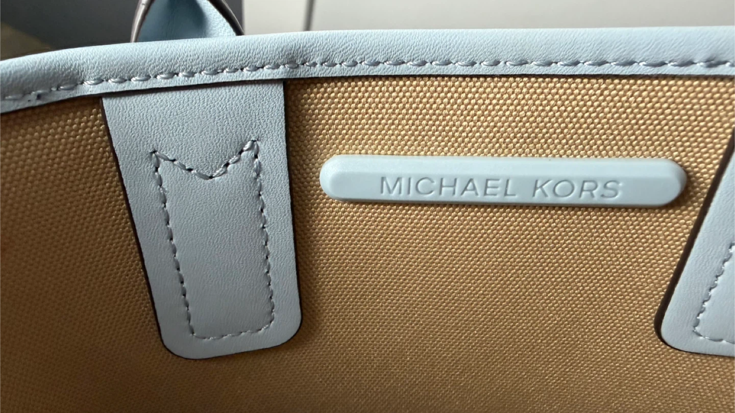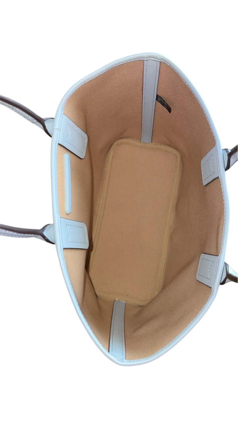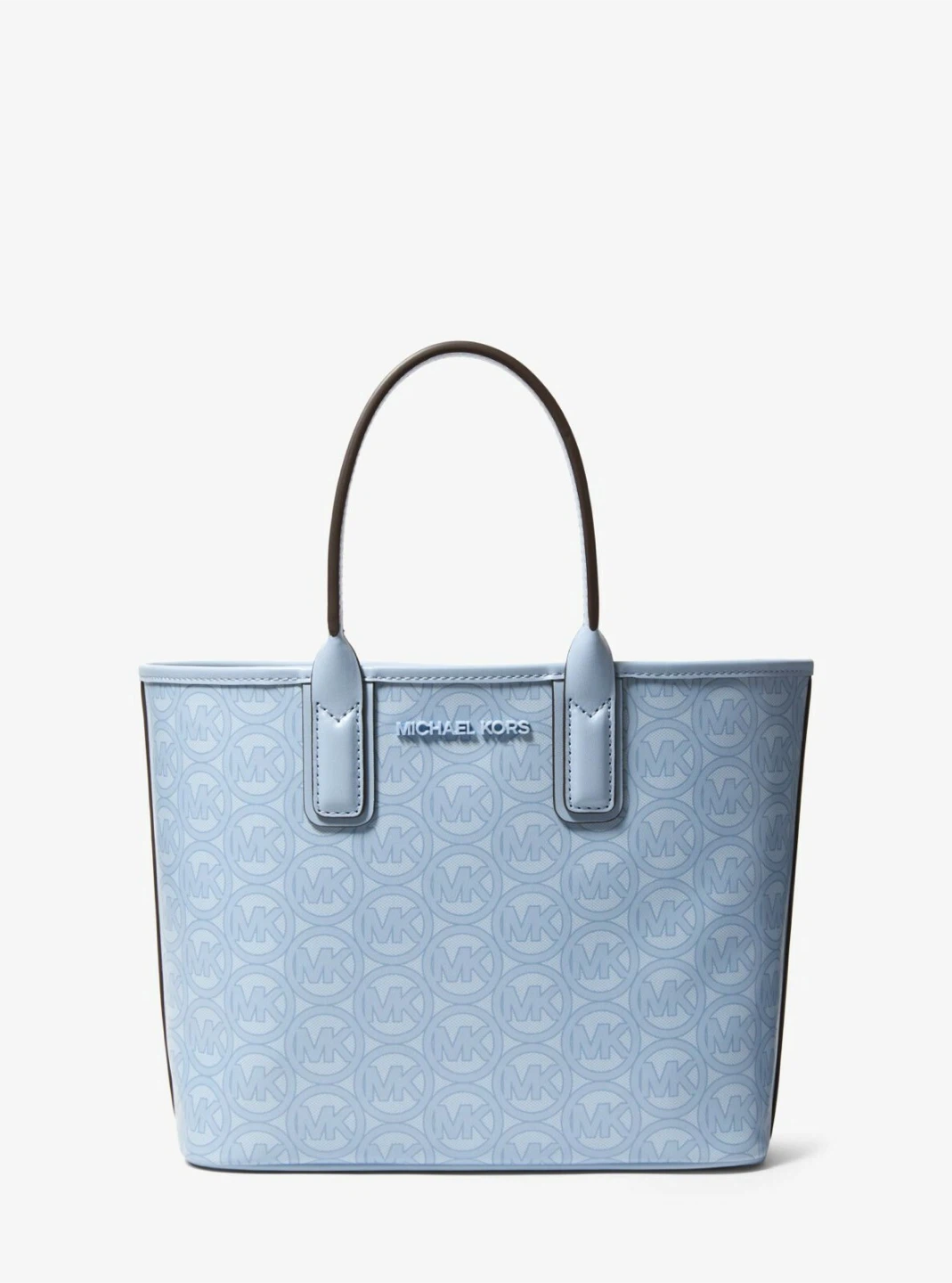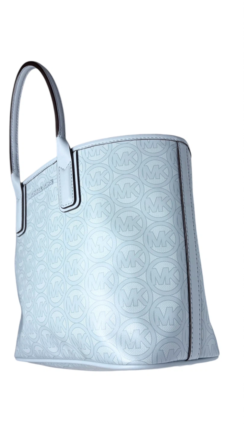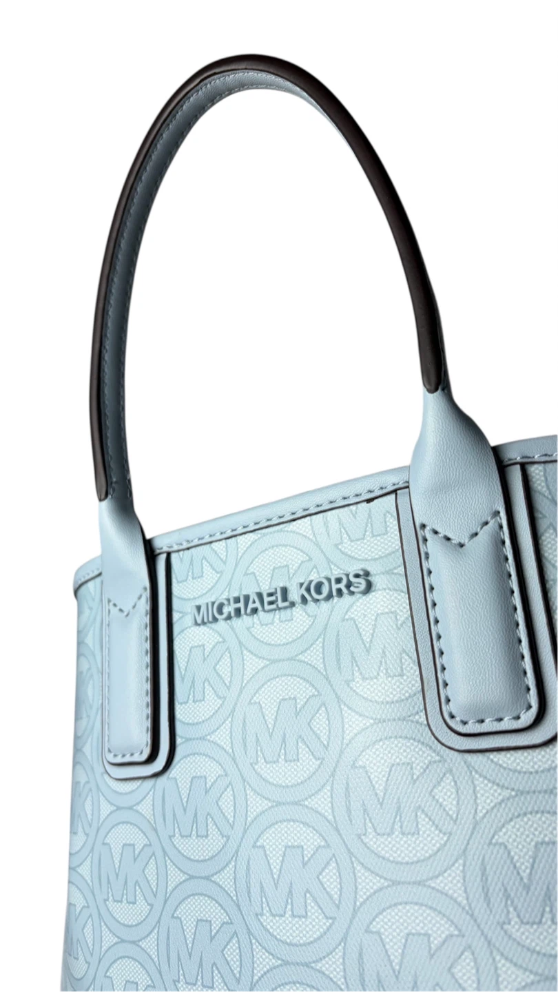 Chic light blue tote with signature MK pattern Stylish and versatile for daily use