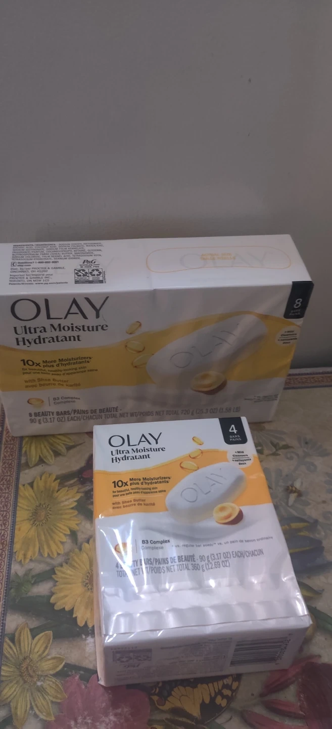 I have some Olay Ultra Moisture Hydratant beauty bars for sale! These bars contain 10x more moisturizers and B3 Complex. You'll get 4 bars at 90 g (3.17 oz) each in one pack, and 8 bars at 90 g (3.17 oz) each in the other pack