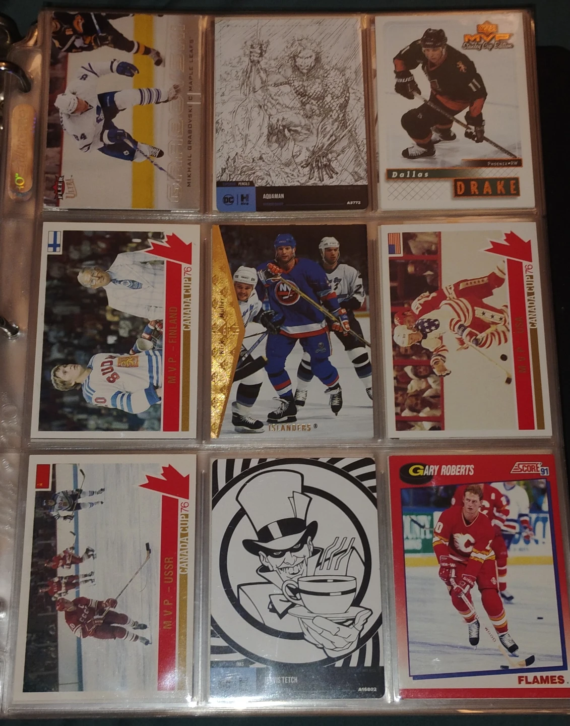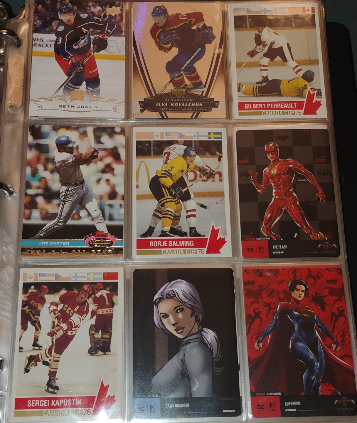Selling cards like vintage hockey cards, a few baseball cards, super hero cards, a few football cards, and a few Disney cards (Mickey mouse cards) extras from my collection price is 50 cents each or all of it for $34.99 please check out my other listings for rarer cards thank you.