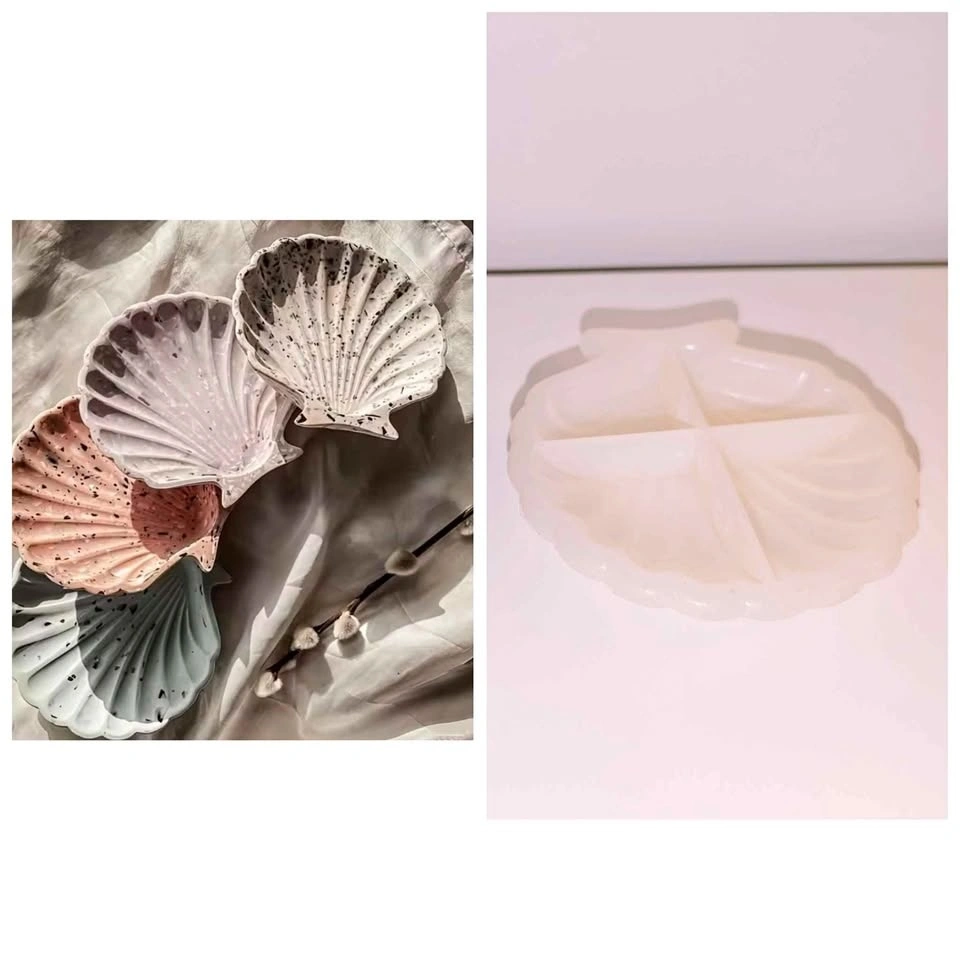 Seashell dish silicone mold for resin and concrete making. Perfect for jewelry storage.