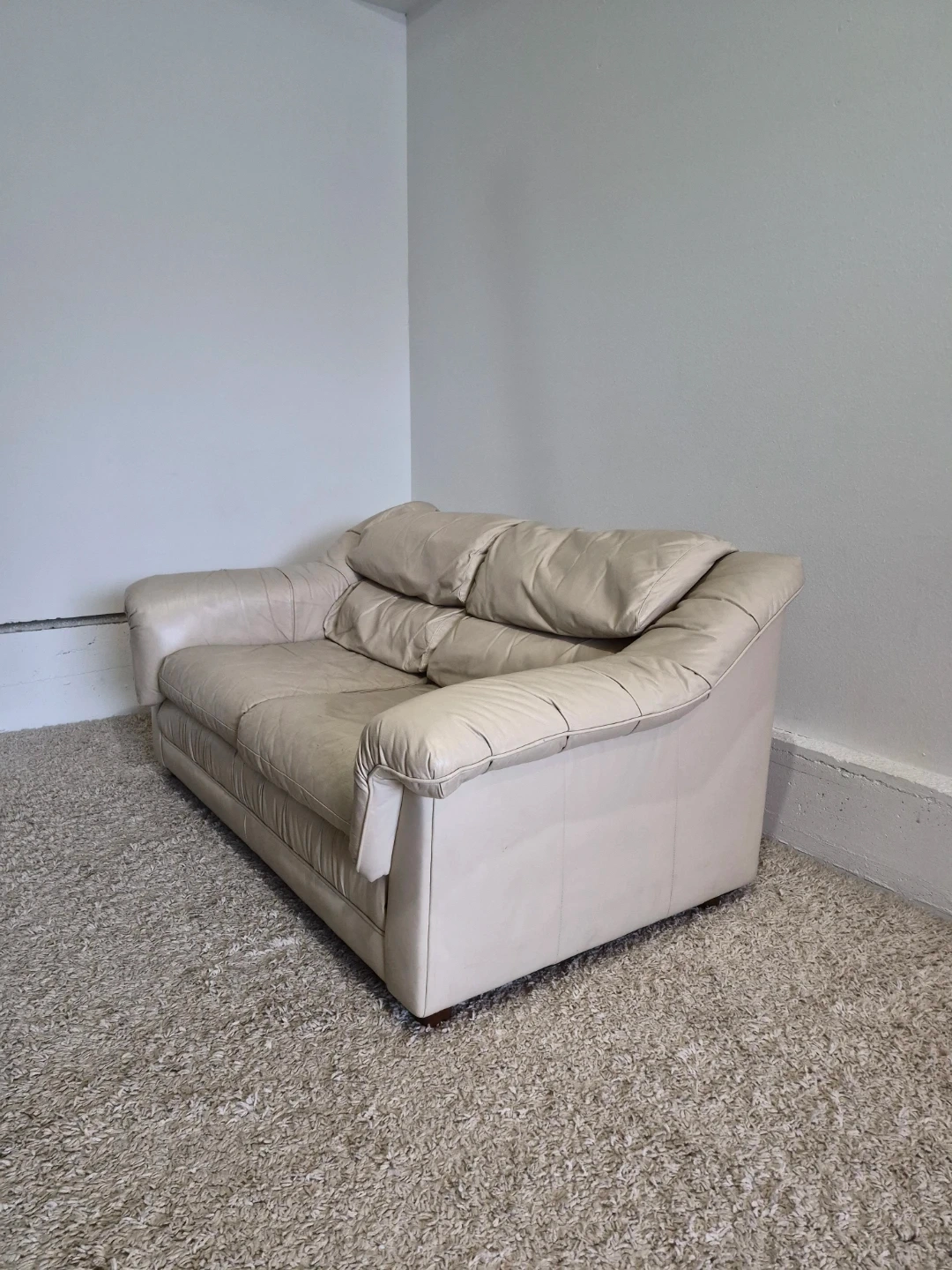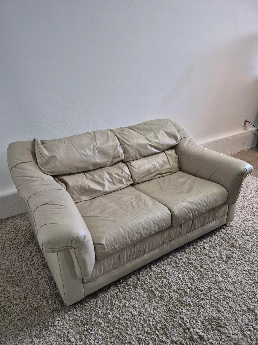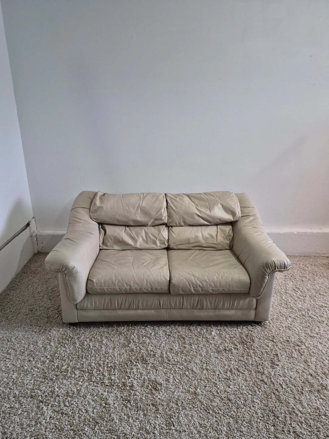 Cream Leather 2 Seater Loveseat Sofa Couch