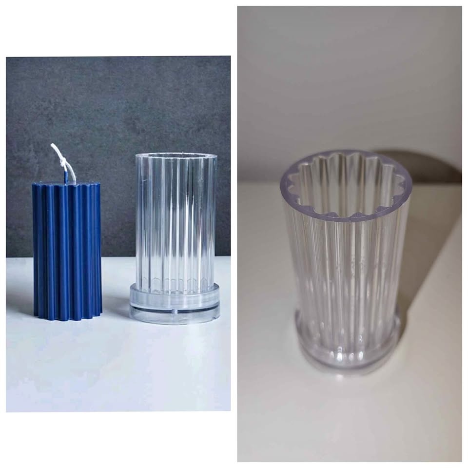 Ribbed pillar candle mold.