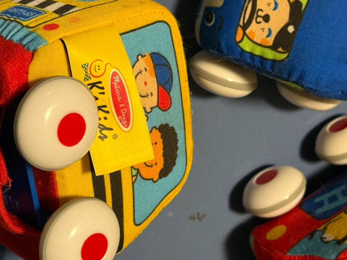 Here's a cute Melissa & Doug K's Kids car toy! It features colourful cars fun for little ones to play with. Perfect for sensory development and imaginative play. Cars have pull and release motors all work.