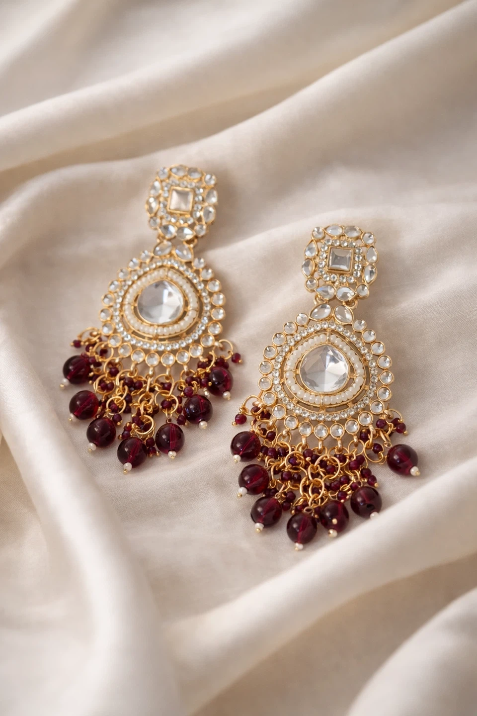 Elegant Dangle Indian Earrings - Red & Gold