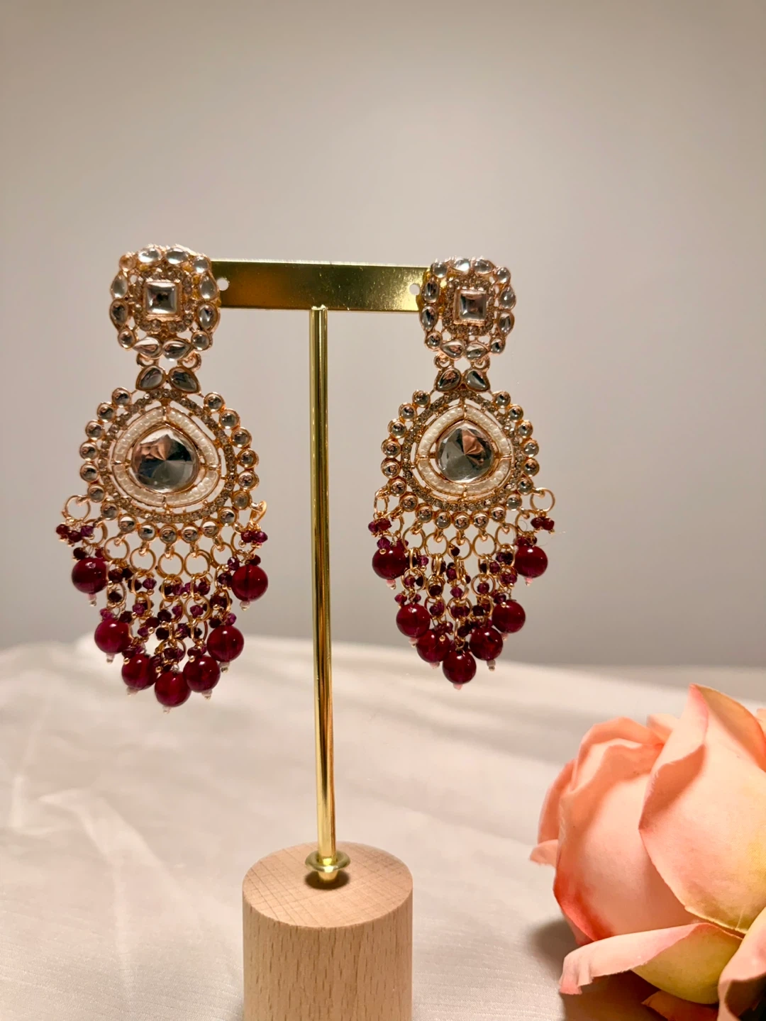 These are a pair of beautiful dangle earrings, perfect for adding a touch of elegance to any outfit! They feature a lovely combination of red and gold tones, with intricate detailing. Ideal for special occasions or to dress up your look.