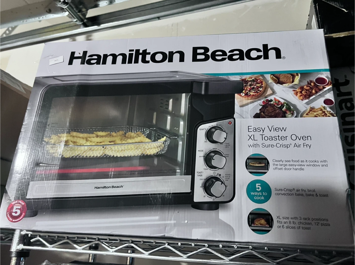 Selling a Hamilton Beach Easy View XL Toaster Oven with Sure-Crisp Air Fry! It has an easy-view window and offset door handle.