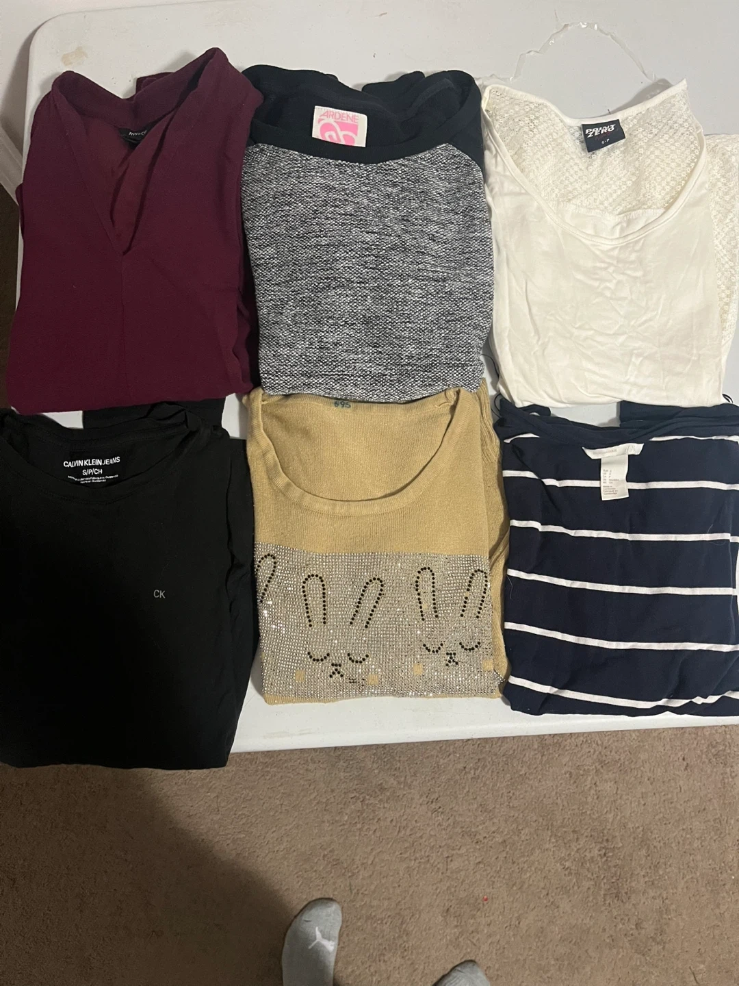 Selling a mixed lot of women's tops in size small/ch. Includes brands like Calvin Klein Jeans, Ardene, and others. Great for adding variety to your wardrobe!