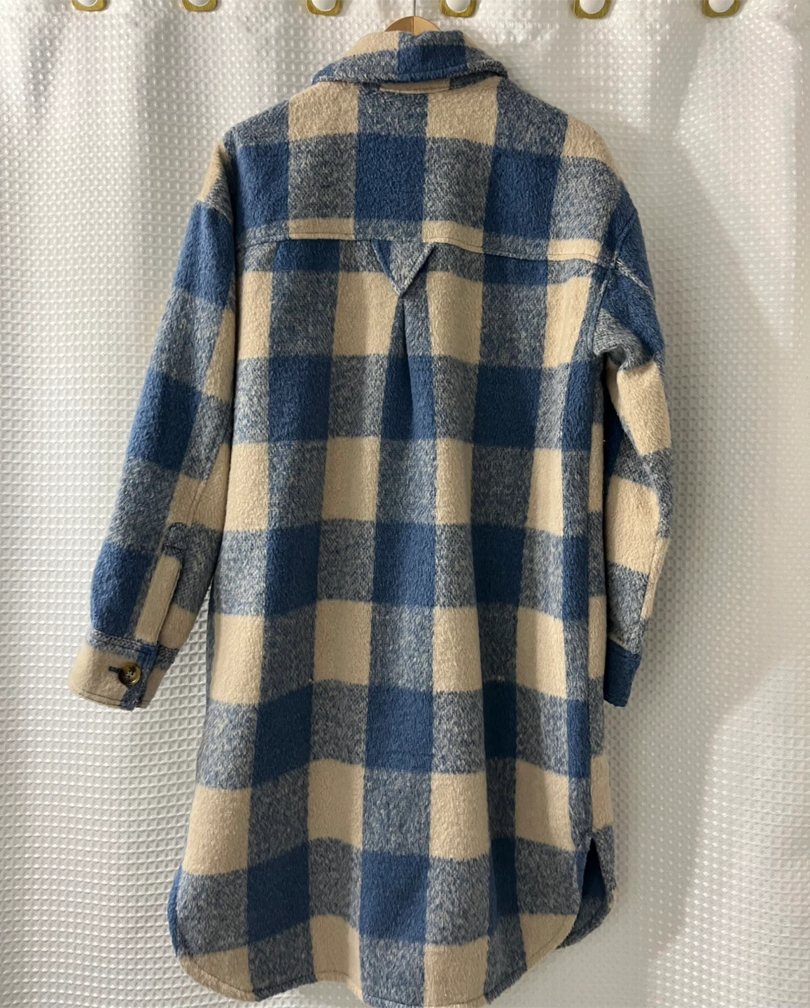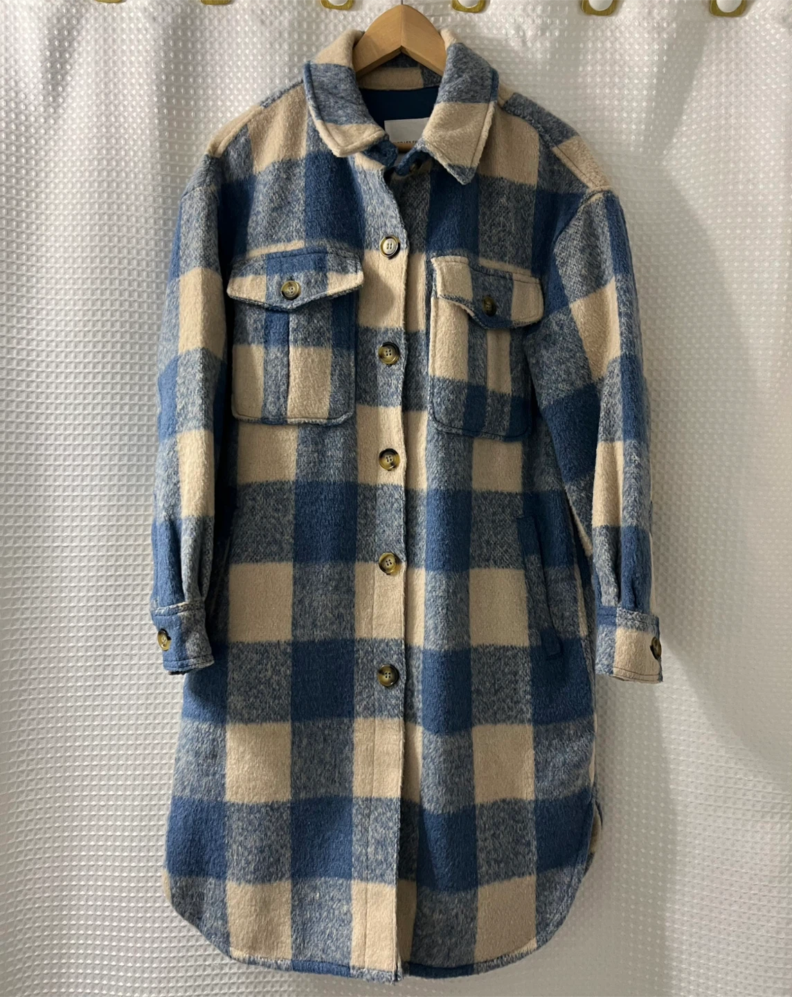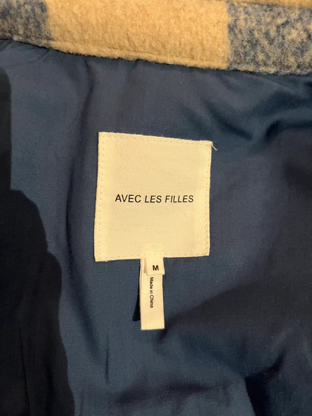Selling a cute Avec Les Filles plaid shacket in size medium! It's made with a blend of 78% polyester, 8% acrylic, 8% cotton, 3% nylon, and 3% other fibres. The lining is 80% polyester and 20% cotton. Perfect for layering!