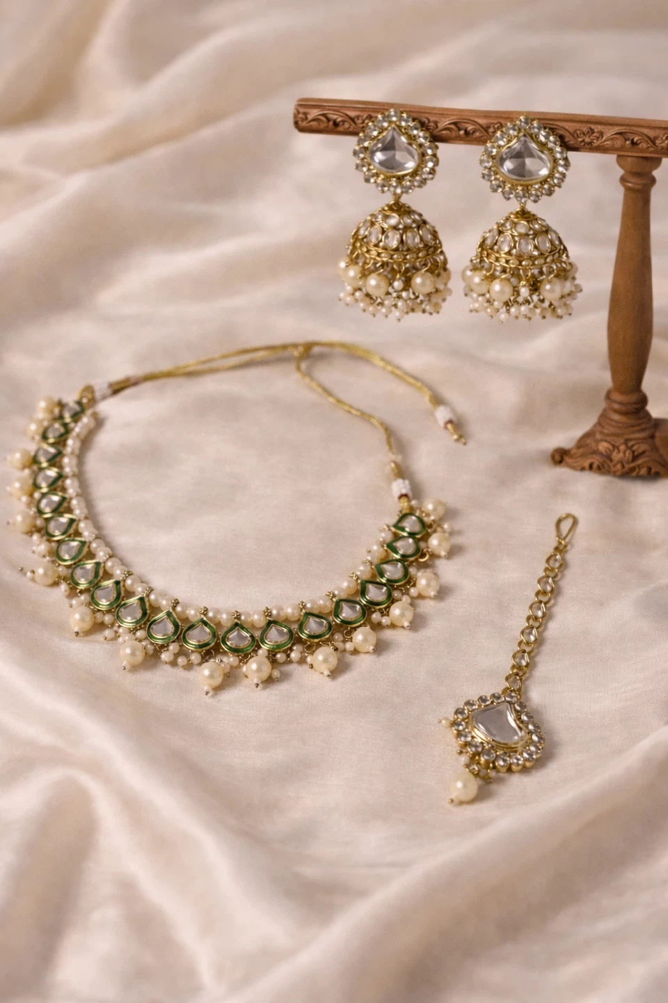 Necklace, Earrings, and Tikka Set - Pearl & Stone