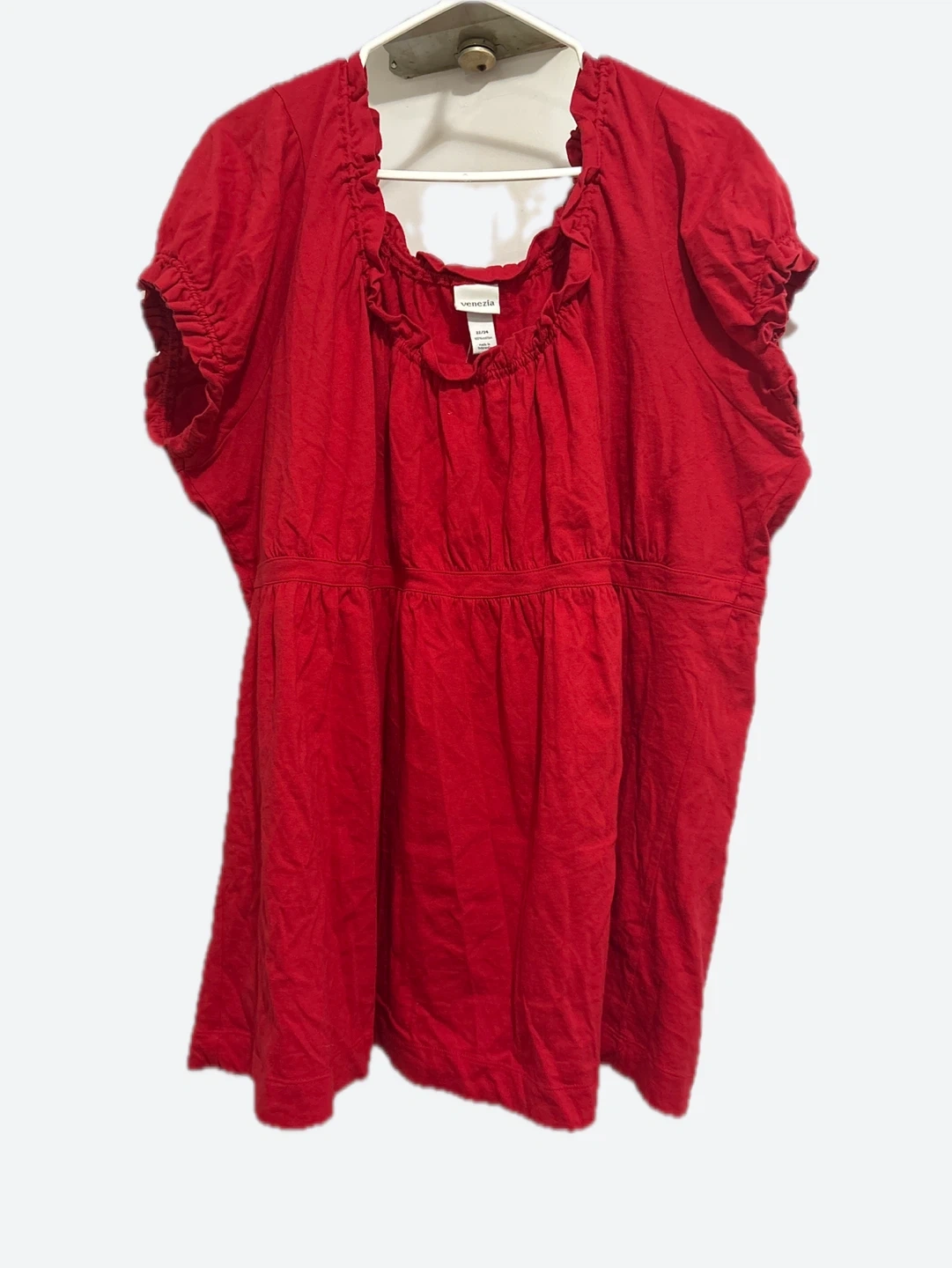 Selling a cute Venezia red blouse in size 22/24! It features a ruffled gathered sleeves. Perfect for a casual day out or a summer gathering!