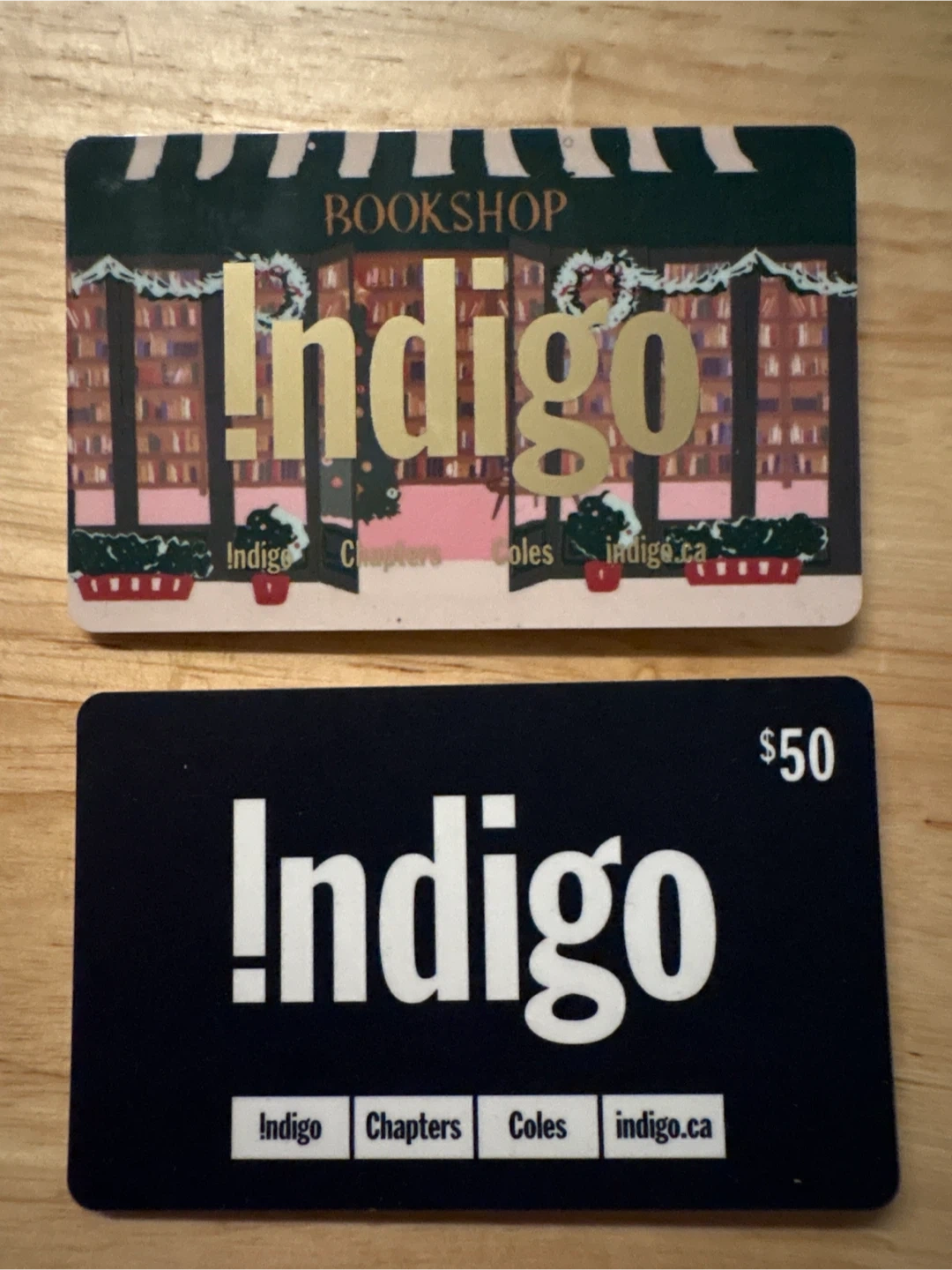 Selling two new Indigo giftcards with a $150 total balance. Perfect for books, gifts, and more!