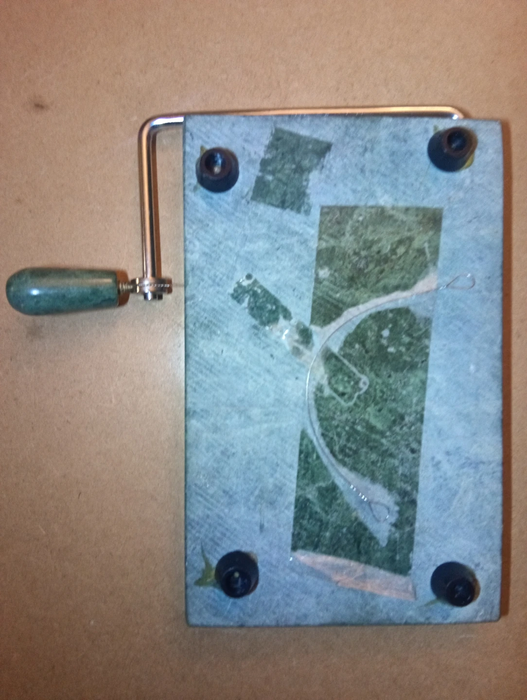 Selling a marble cheese cutter. Comes with an extra cutting string.