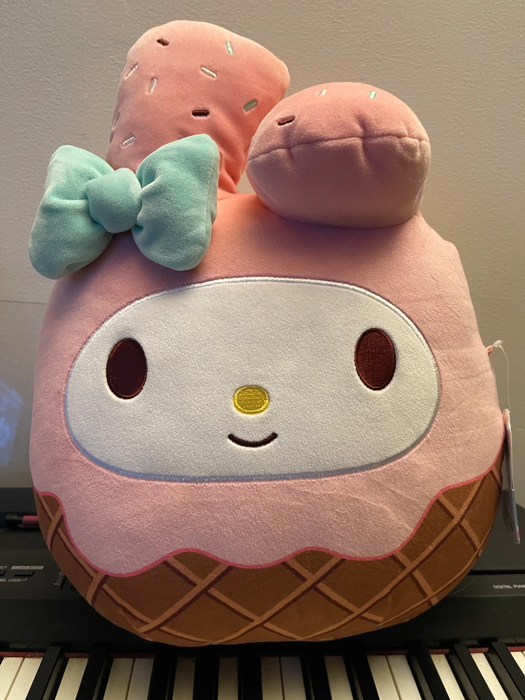 Selling a cute Squishmallows plush featuring Hello Kitty as My Melody! It's in great condition and ready for a new home. This adorable plush is perfect for collectors or anyone who loves Hello Kitty and Squishmallows