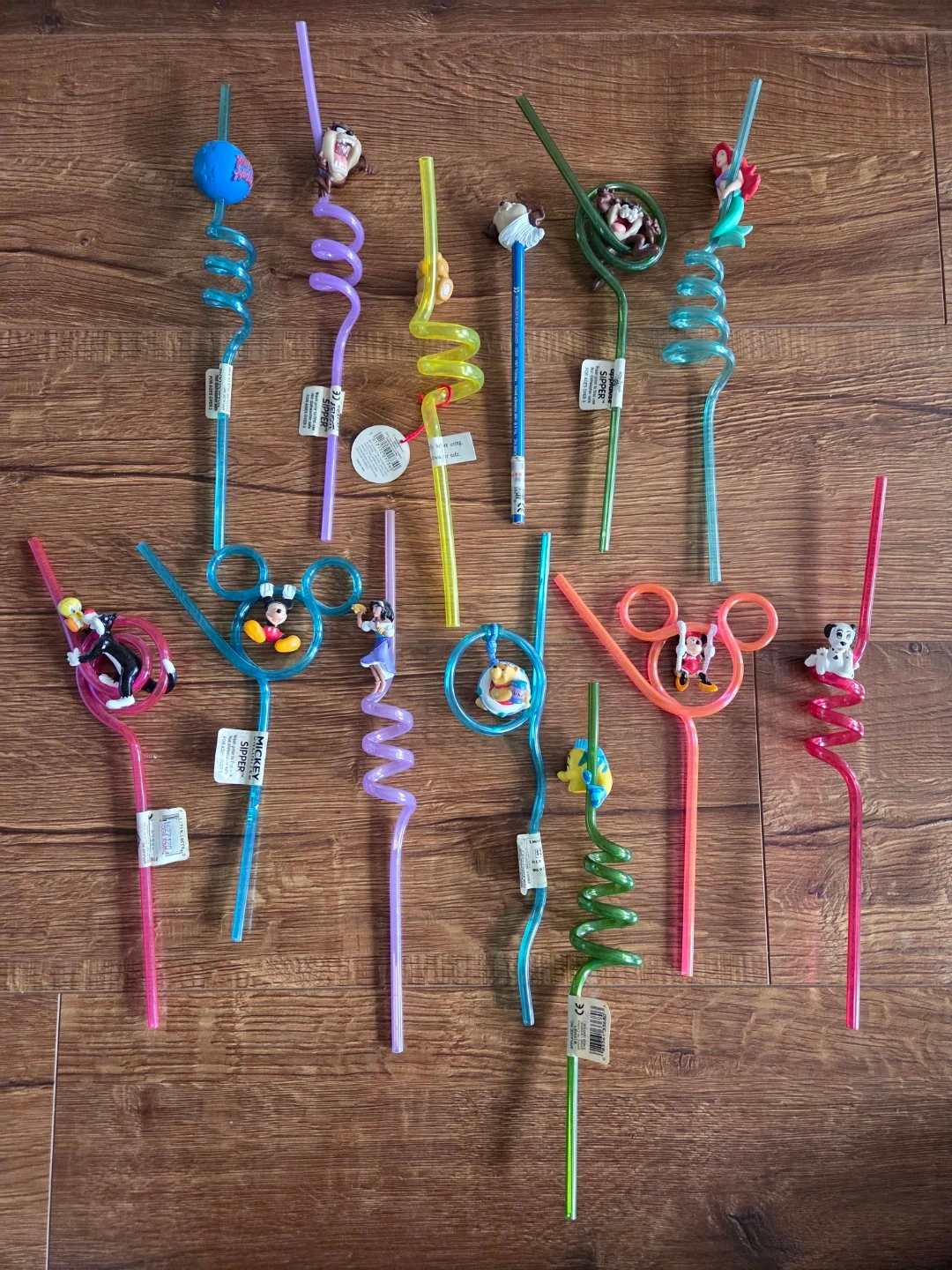 Selling a collection of fun Disney character sipper straws! They feature various characters like Mickey Mouse, Ariel, and others. Perfect for kids or Disney collectors!