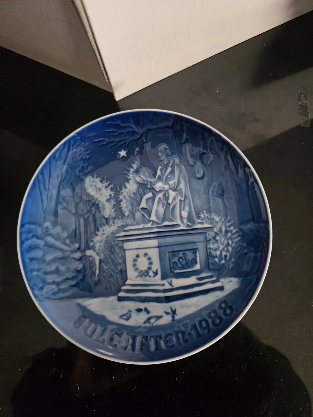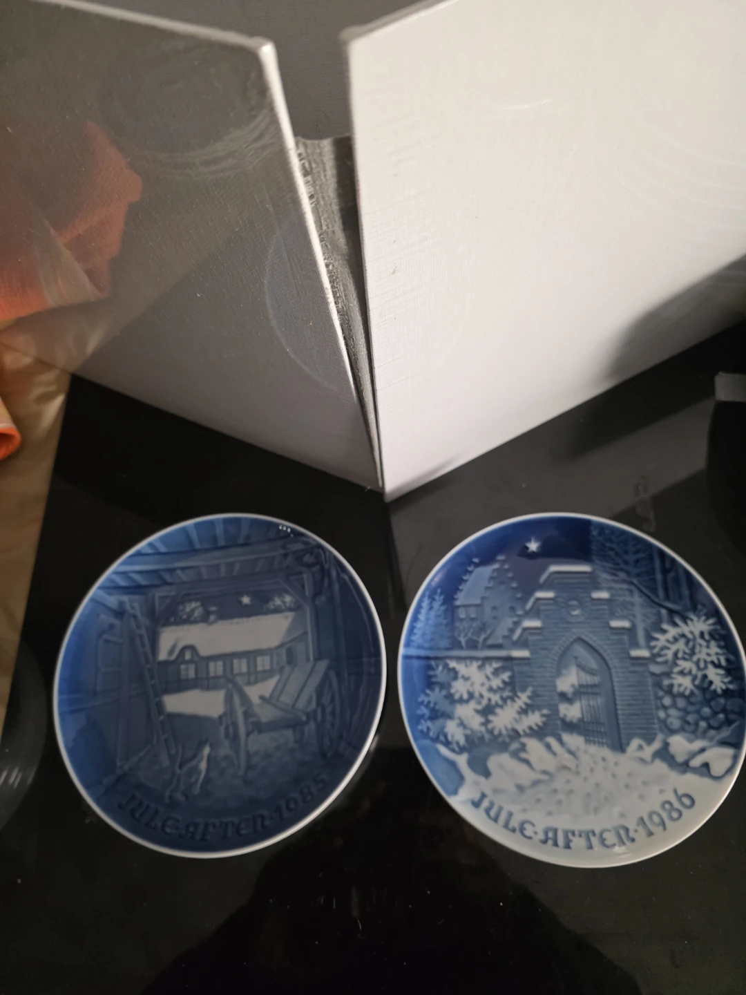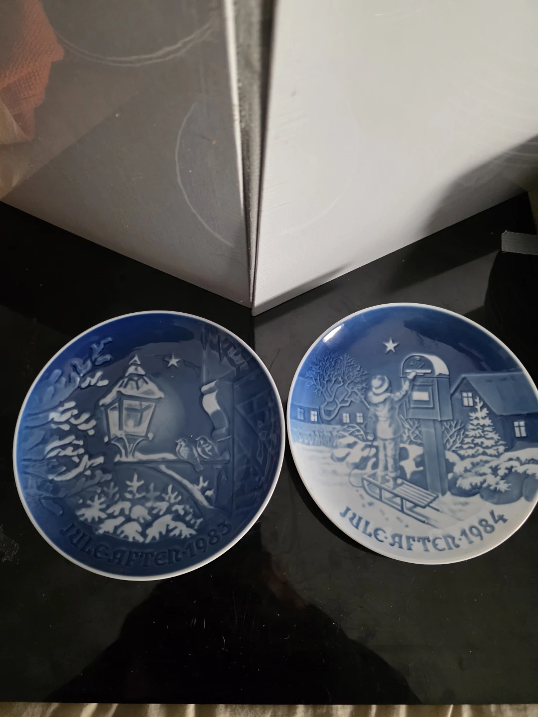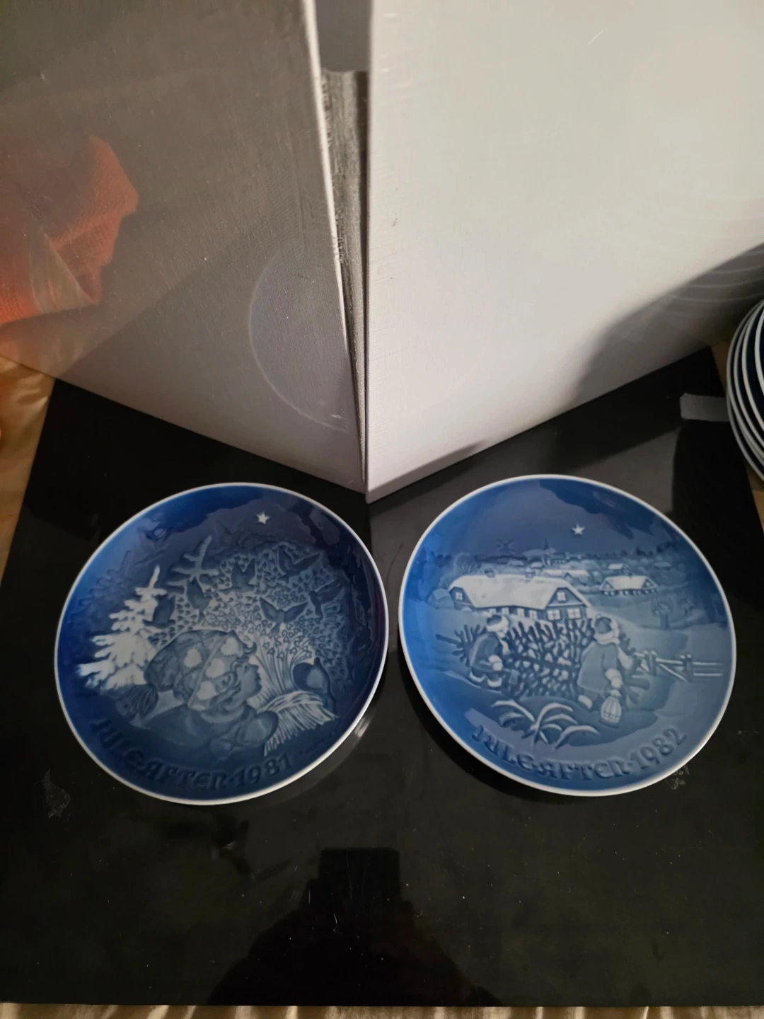 Selling a collection of Bing & Grondahl Christmas plates. They feature lovely blue and white winter scenes. Each plate is marked 'Jule Aften' with the year. The back of the plates have the Bing & Grondahl logo and text.