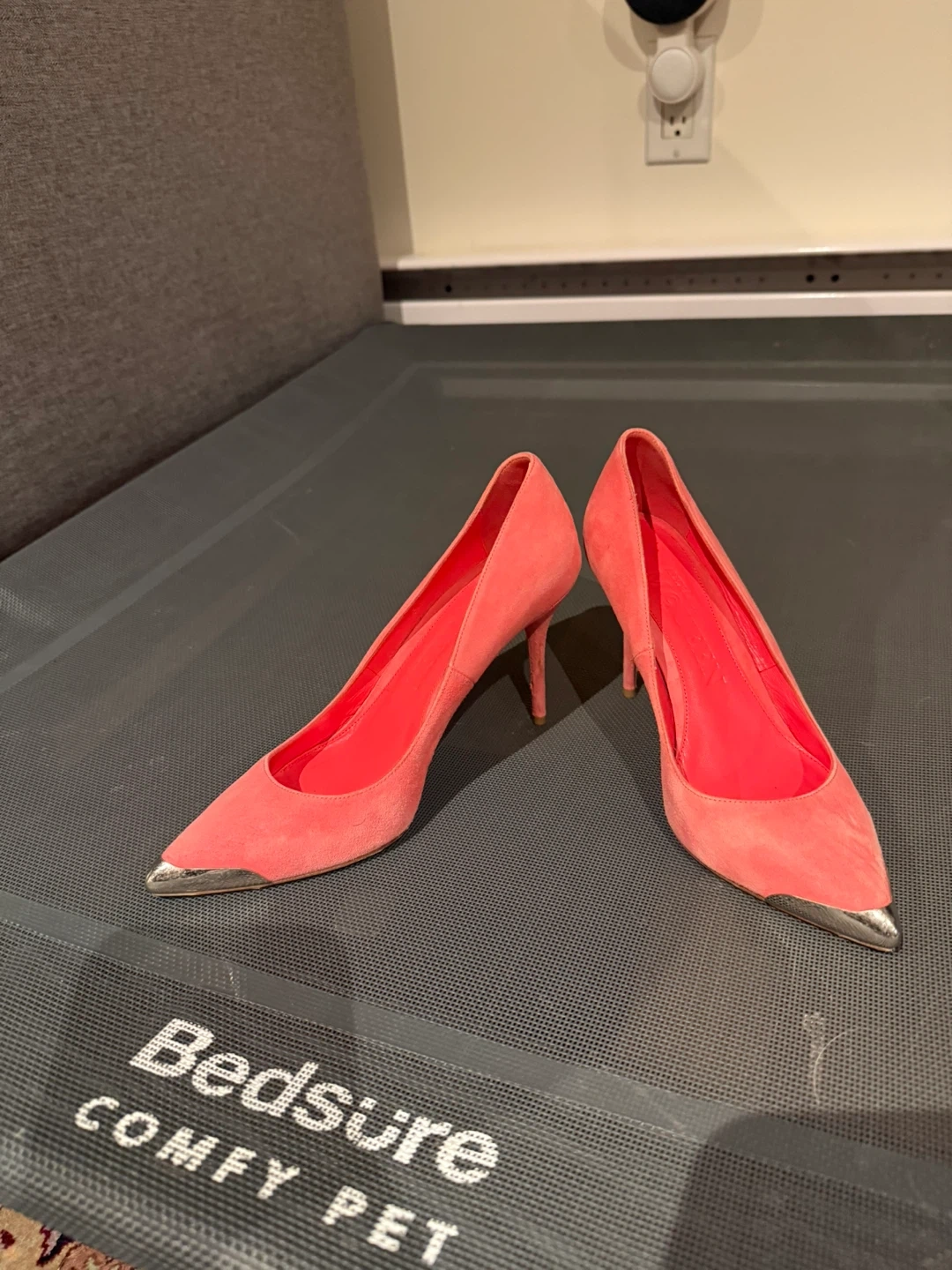 Selling a pair of Alexander McQueen heels in a beautiful pink. They have a metal accent on the toe. Size is 37.5