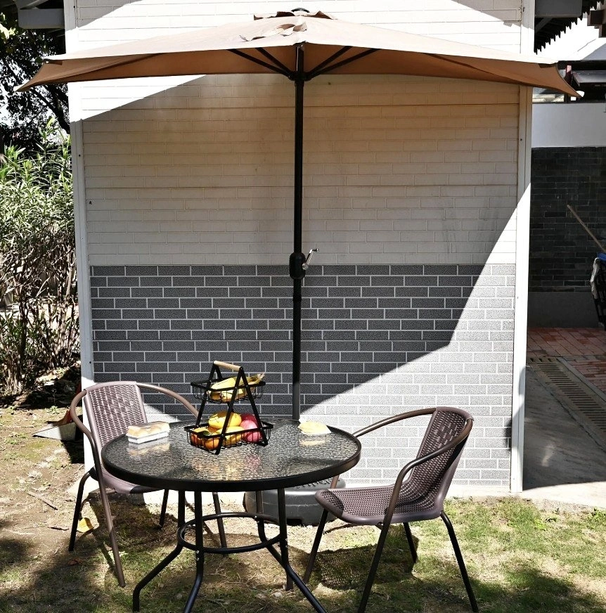 9 ft Half-Round Patio Umbrella + Umbrella Base